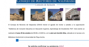 Más información29 de octubre: Capacitación para académicos «Hablemos de Inclusión Educativa en Educación Superior, Aprendizaje de Estudiantes TEA»