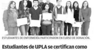 Más informaciónEstudiantes de UPLA se certifican como promotores de la donación de sangre