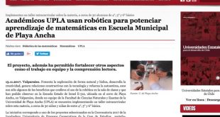 Más informaciónAcadémicos UPLA usan robótica para potenciar aprendizaje de matemáticas en Escuela Municipal de Playa Ancha