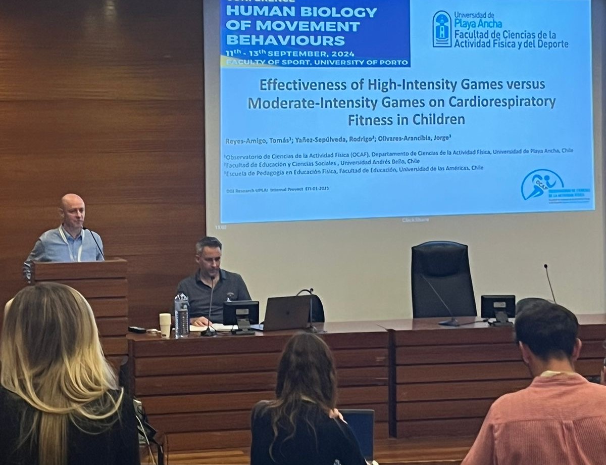 El Dr. Reyes dio cuenta de resultados del estudio que realizó junto a investigadores de la Universidad Andrés Bello y Universidad de Las Américas, titulado “Eficacia de los juegos de alta intensidad frente a los de intensidad moderada sobre la aptitud cardiorrespiratoria en niños”.