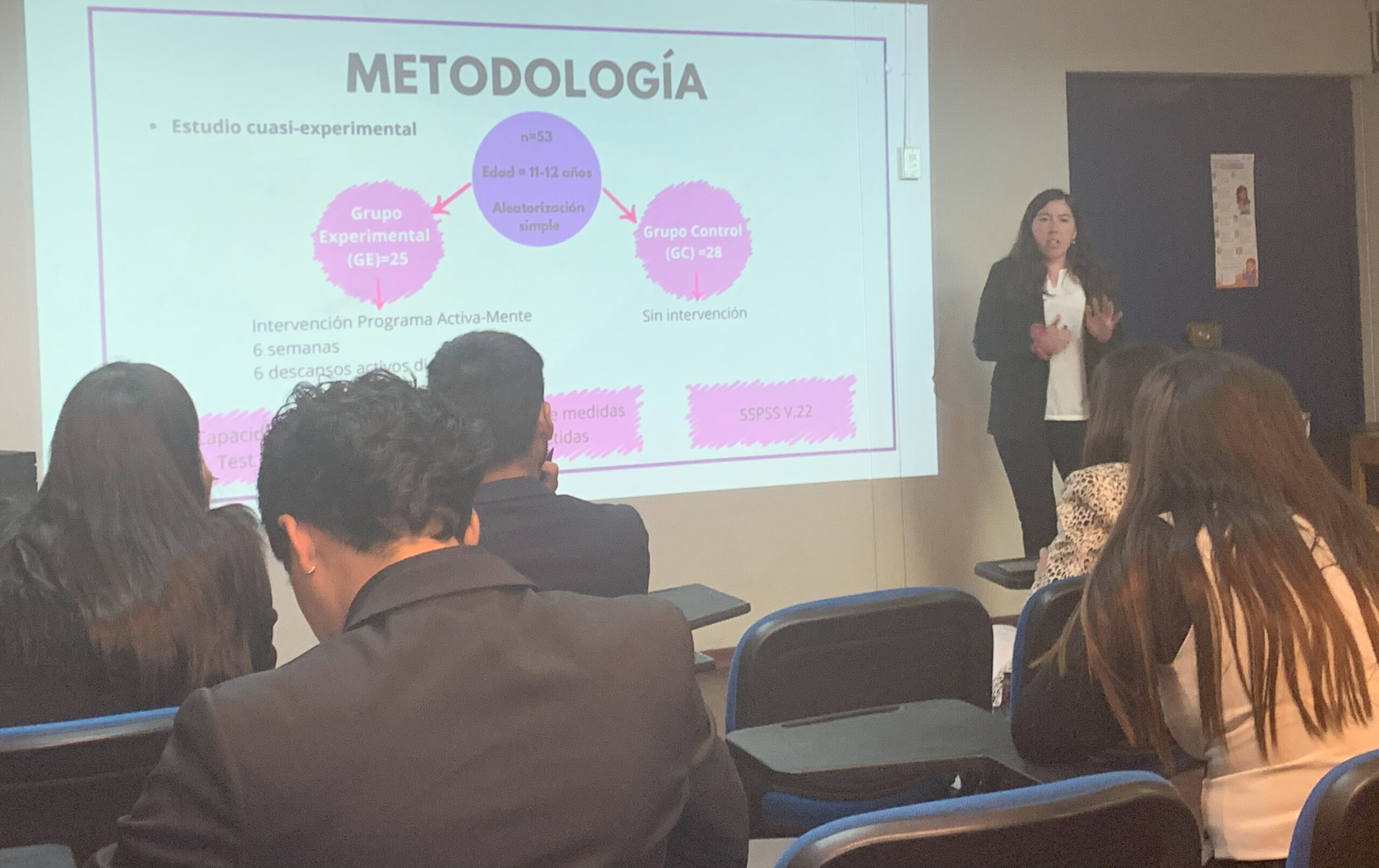Por otra parte, la profesora Evelyn Arancibia Vásquez y el estudiante de Pedagogía en Educación Física Nicolás Mancilla Mirada, también del OCAF, participaron por segundo año consecutivo en la III Jornada de Jóvenes Investigadores organizada por el Departamento de Educación Física, Deportes y Recreación (DEFDER) de la Universidad Metropolitana de las Ciencias de la Educación (UMCE). En esta ocasión, presentaron los resultados de una investigación sobre el efecto de los descansos activos en la capacidad aeróbica de niños y niñas.
