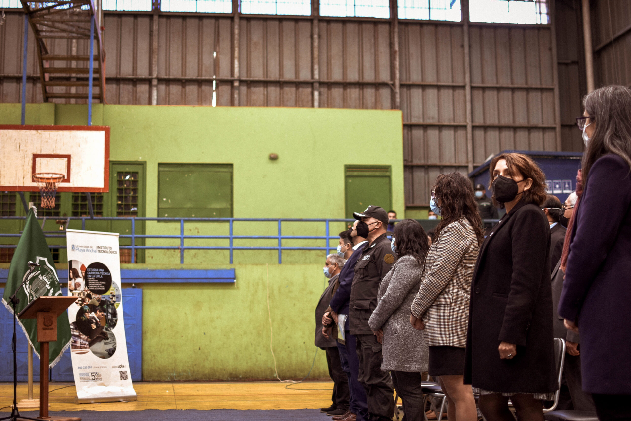En la ceremonia de titulación estuvieron presentes Violeta Acuña Collado, vicerrectora académica de la Universidad de Playa Ancha; Patricio Ibáñez León, director del Instituto Tecnológico de la UPLA; coronel José Mesa Guajardo, director regional de Gendarmería de Chile; María Fernanda Moraga Vistoso, seremi de Gobierno; Paula Gutiérrez Huenchuleo, seremi de Justicia y Derechos Humanos; entre otras autoridades, docentes, invitados y familiares de las personas privadas de libertad.