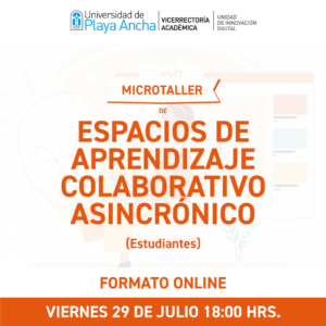 Además las y los estudiantes podrán participar en el microtaller “Espacios de Aprendizaje Colaborativo Asincrónico”, el cual se efectuará este viernes 29 de julio, a las 18.00 horas, vía Zoom (inscripción aquí).