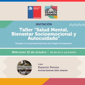 En el marco de la política pública de Reactivación Educativa Integral denominada “Seamos Comunidad”, impulsada por el Ministerio de Educación y que propone abordar los efectos de la pandemia en las comunidades escolares, la Universidad de Playa Ancha invita a inscribirse en el taller gratuito de “Salud Mental, Bienestar Socioemocional y Autocuidado“, diseñado en conjunto con la Universidad de Valparaíso, el Centro de Perfeccionamiento, Experimentación e Investigaciones Pedagógicas (CPEIP), el Ministerio de Salud, la Seremi de Educación y Departamentos Provinciales de Educación de la Quinta Región.
