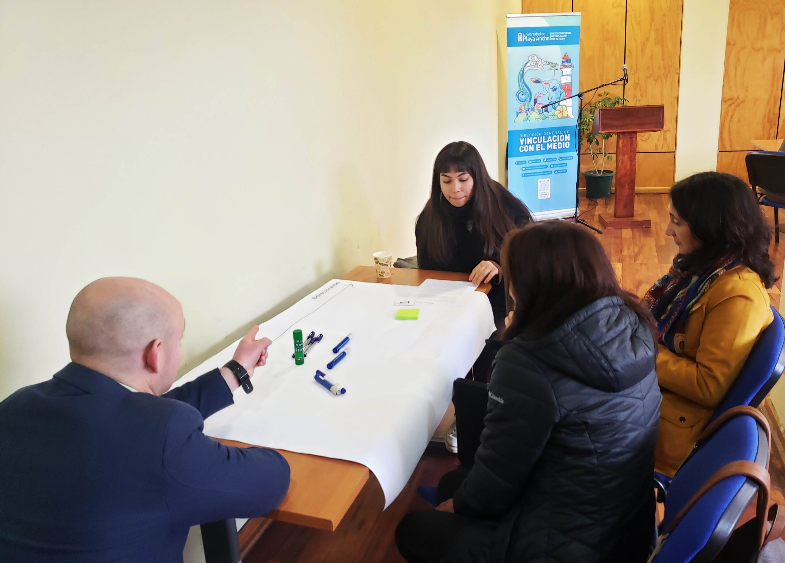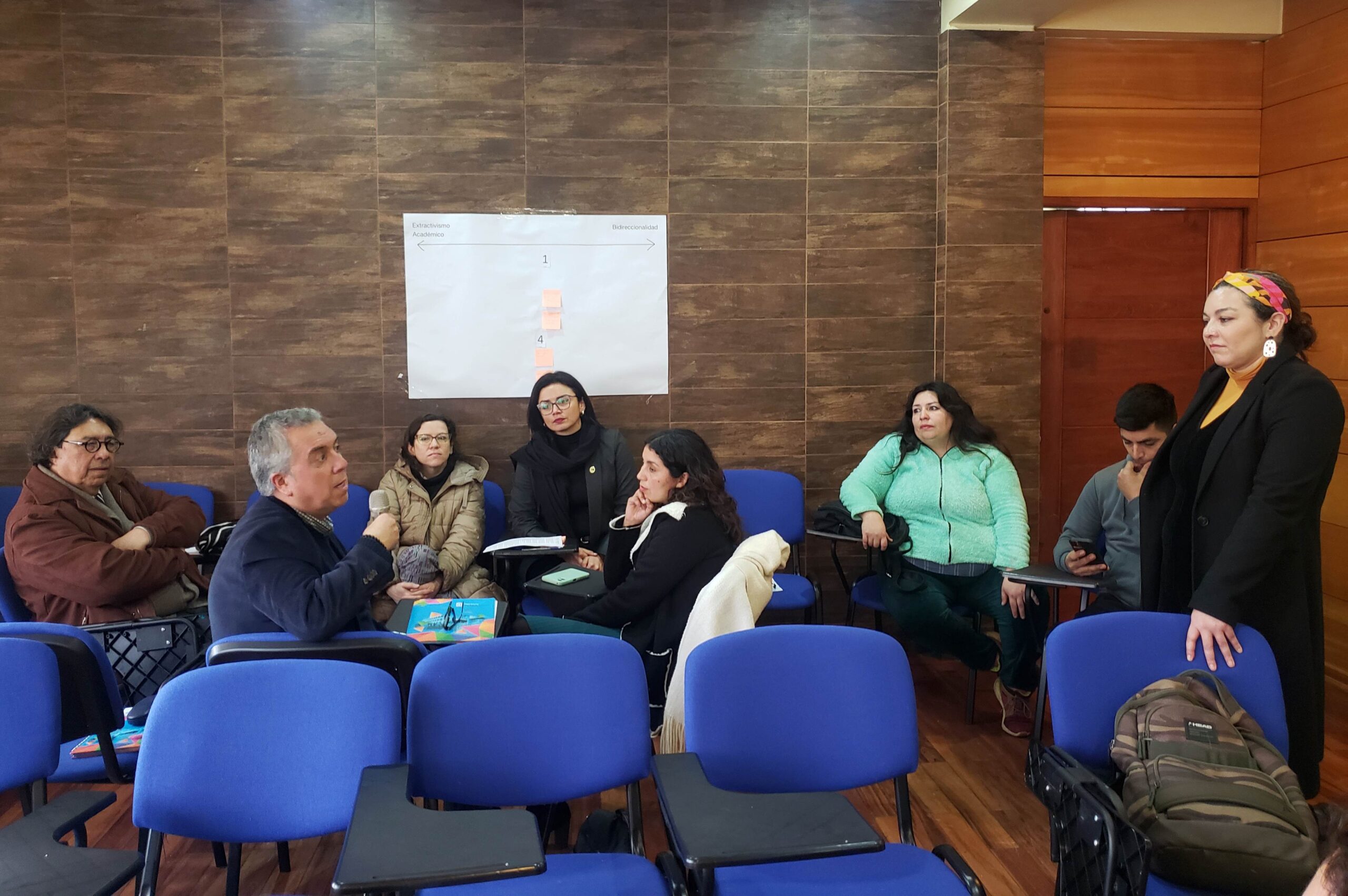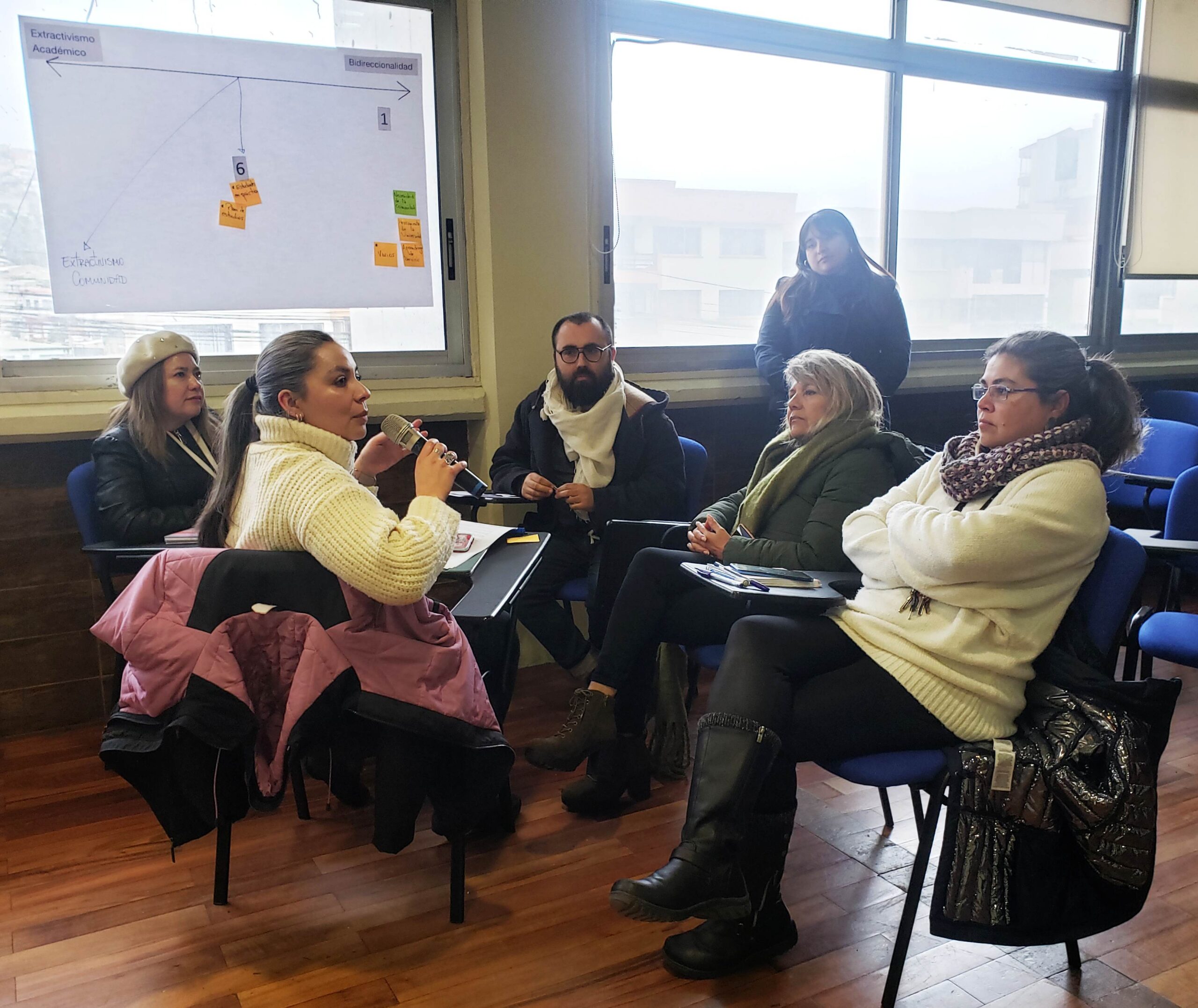 Durante la actividad, integrantes de cada uno de los equipos fueron presentando los objetivos de sus proyectos, para luego dar paso a un taller donde se problematizó sobre los desafíos de la vinculación con el medio, facilitado por la encargada de Vínculo Académico de la Unidad de Innovación Social de la DGVM, Christine Bailey Catalán, titulado “Desde el extractivismo académico hacia procesos horizontales y democráticos con el entorno”.