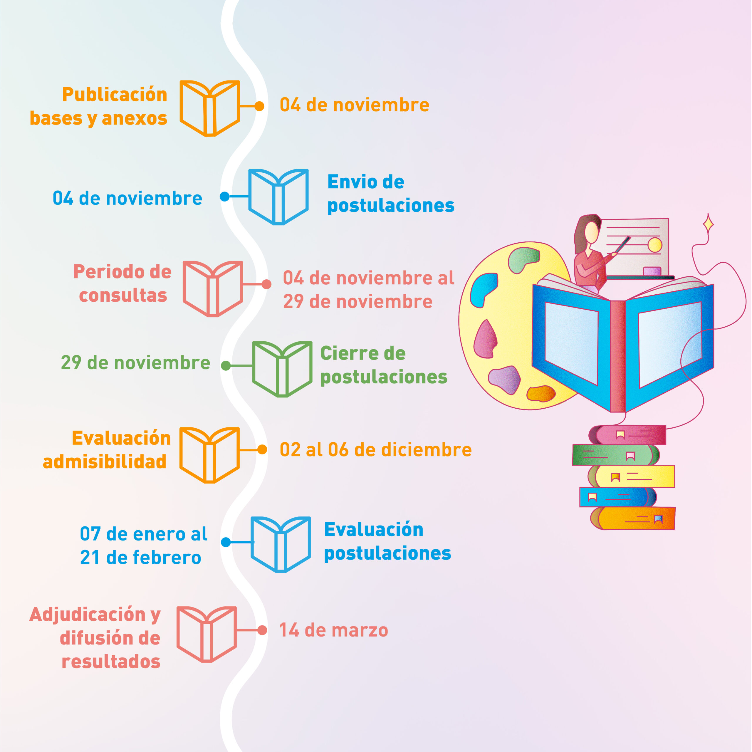 Los proyectos editoriales ganadores podrán ejecutarse a contar del día de la entrega de los resultados. Por último, el cierre de los proyectos debe considerar actividades de presentación y difusión, que deben ser realizadas como máximo al finalizar el primer semestre de 2025.