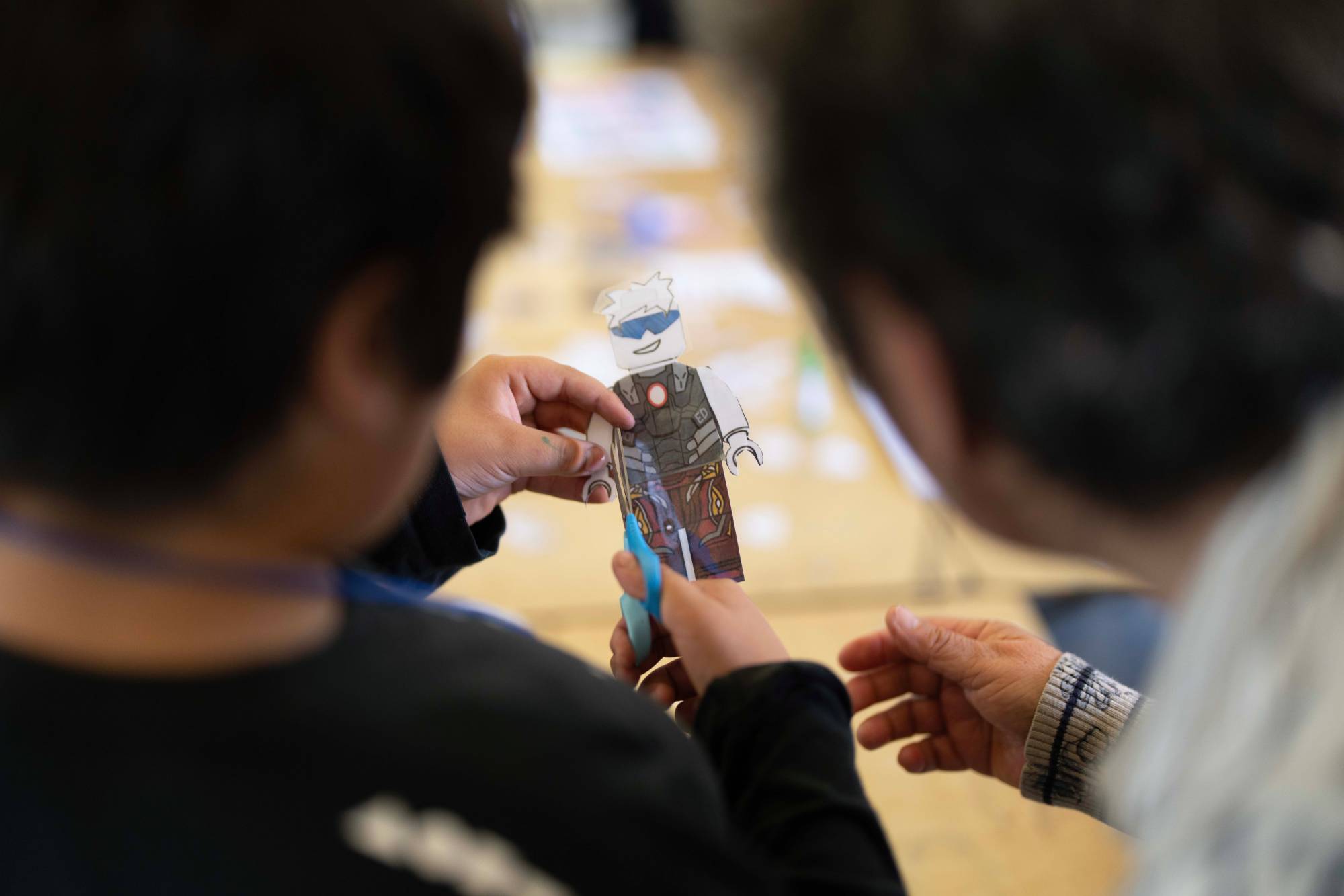 Por otra parte, en estas jornadas y en las realizadas en el Museo Universitario del Grabado los estudiantes llevaron a cabo una serie de actividades que incluyeron uso de recursos tecnológicos, literarios, artísticos y de expresión corporal. Por ejemplo, elaboraron en papel sus propios avatares, los cuales luego imprimieron en una máquina de termolaminado, para finalmente fijarlos en un gran mapa. En tanto, durante su paso por el MUG visitaron la Sala Carlos Hermosilla, donde reflexionaron a partir de algunas obras de este exponente fundamental del grabado que tienen como protagonistas a niños; y participaron de un taller donde elaboraron un timbre personalizado y un “libro del artista” en el que plasmaron una narración propia con diferentes técnicas aprendidas.