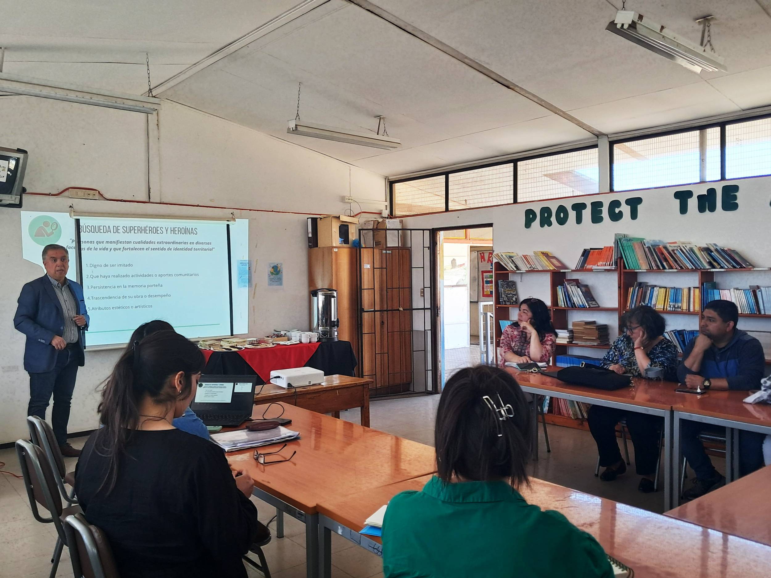 Fue entonces que entre los docentes presentes se propuso a Natalio Maldonado como “superhéroe”, quien por años ha mantenido un estrecho vínculo de colaboración con la Escuela Diego Portales.