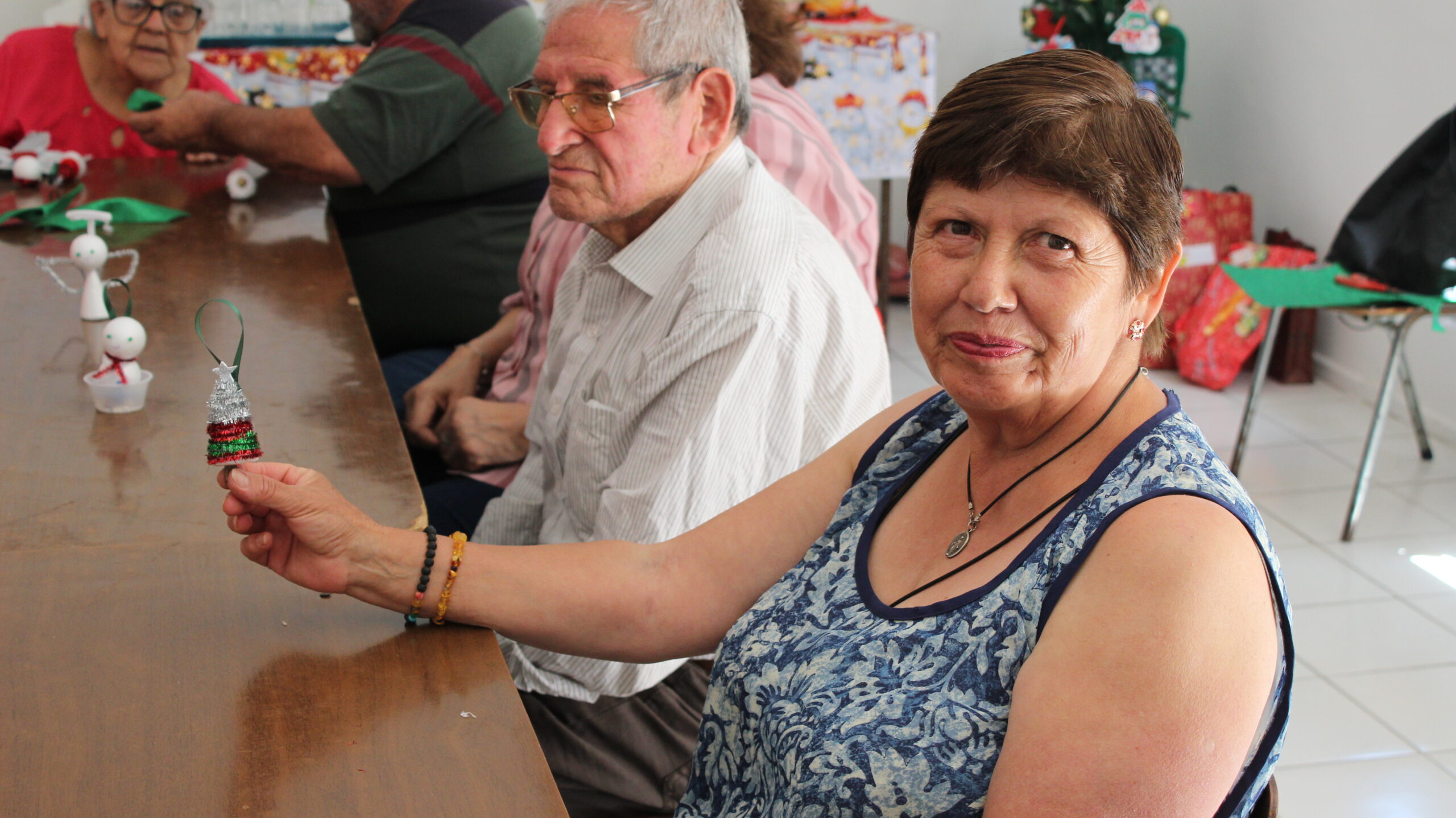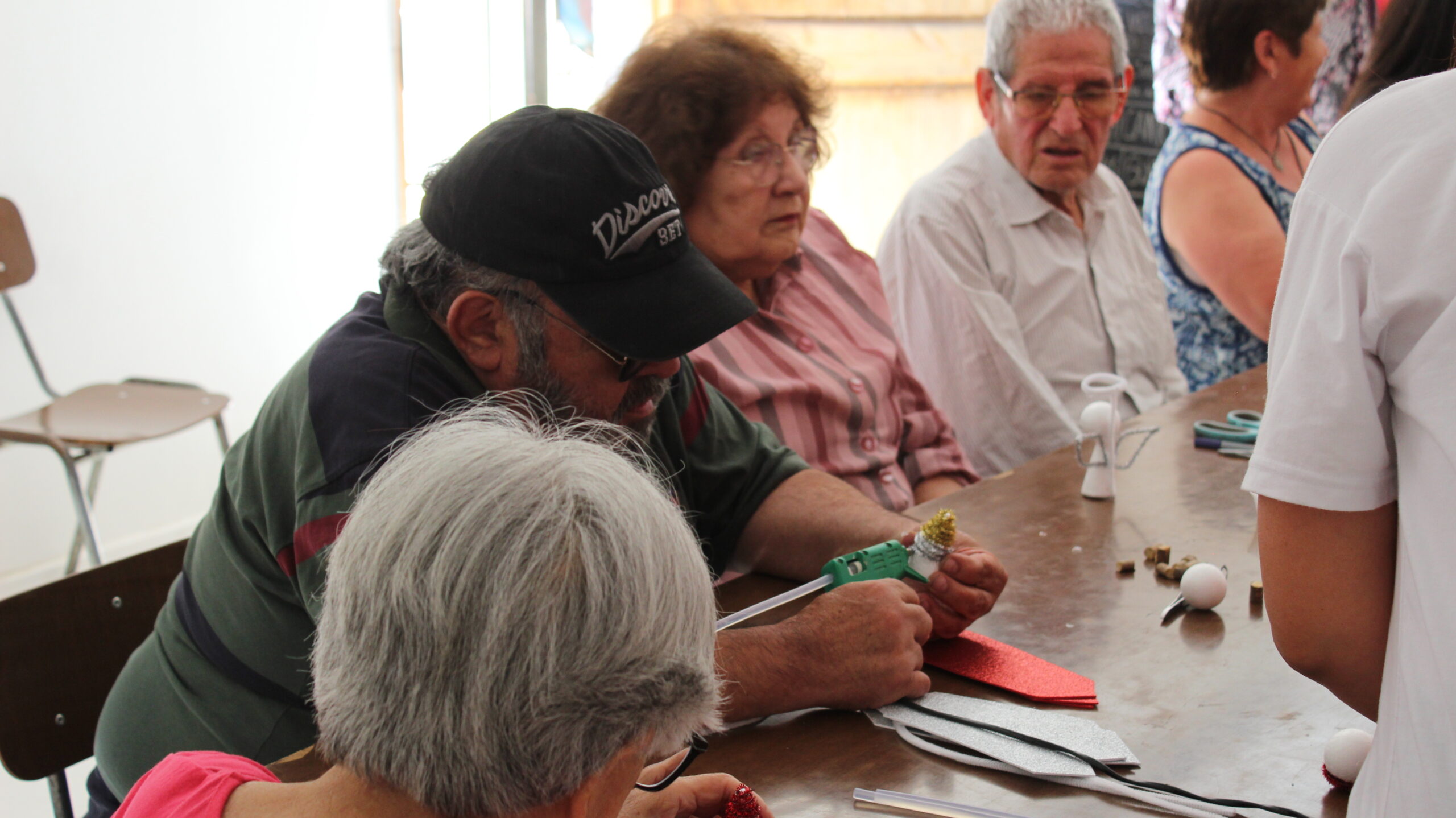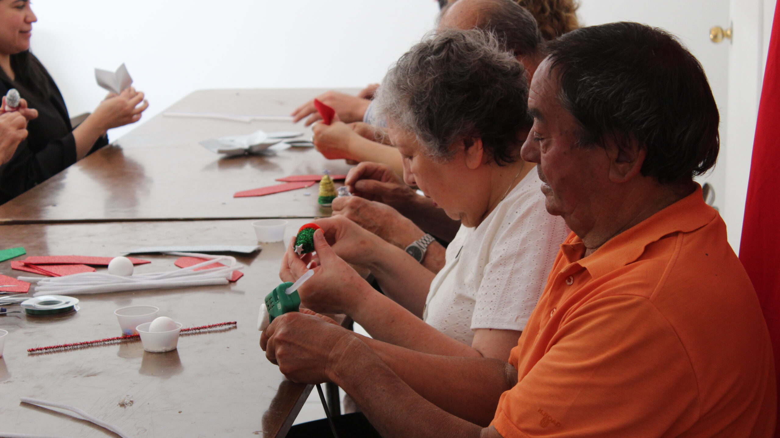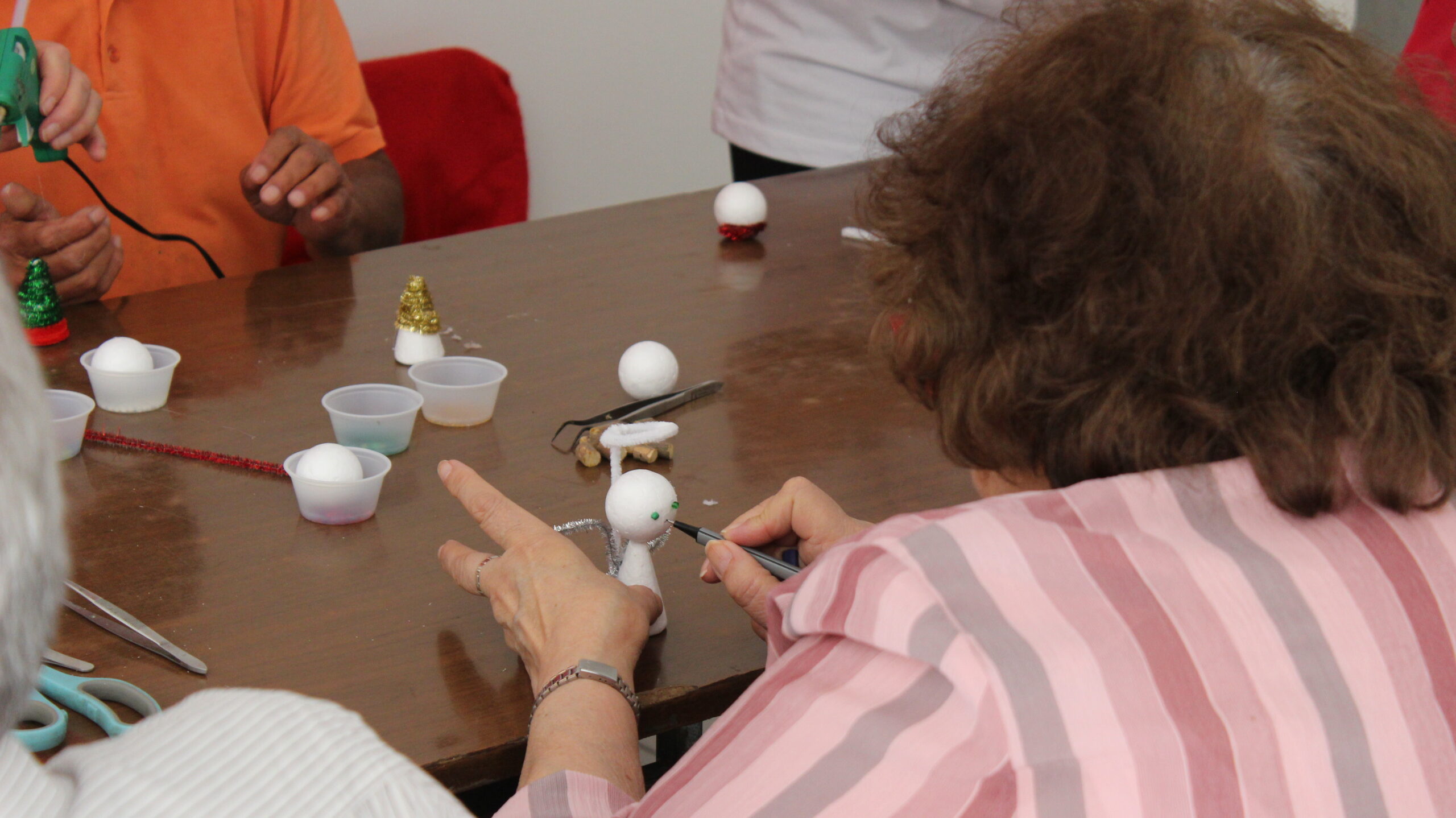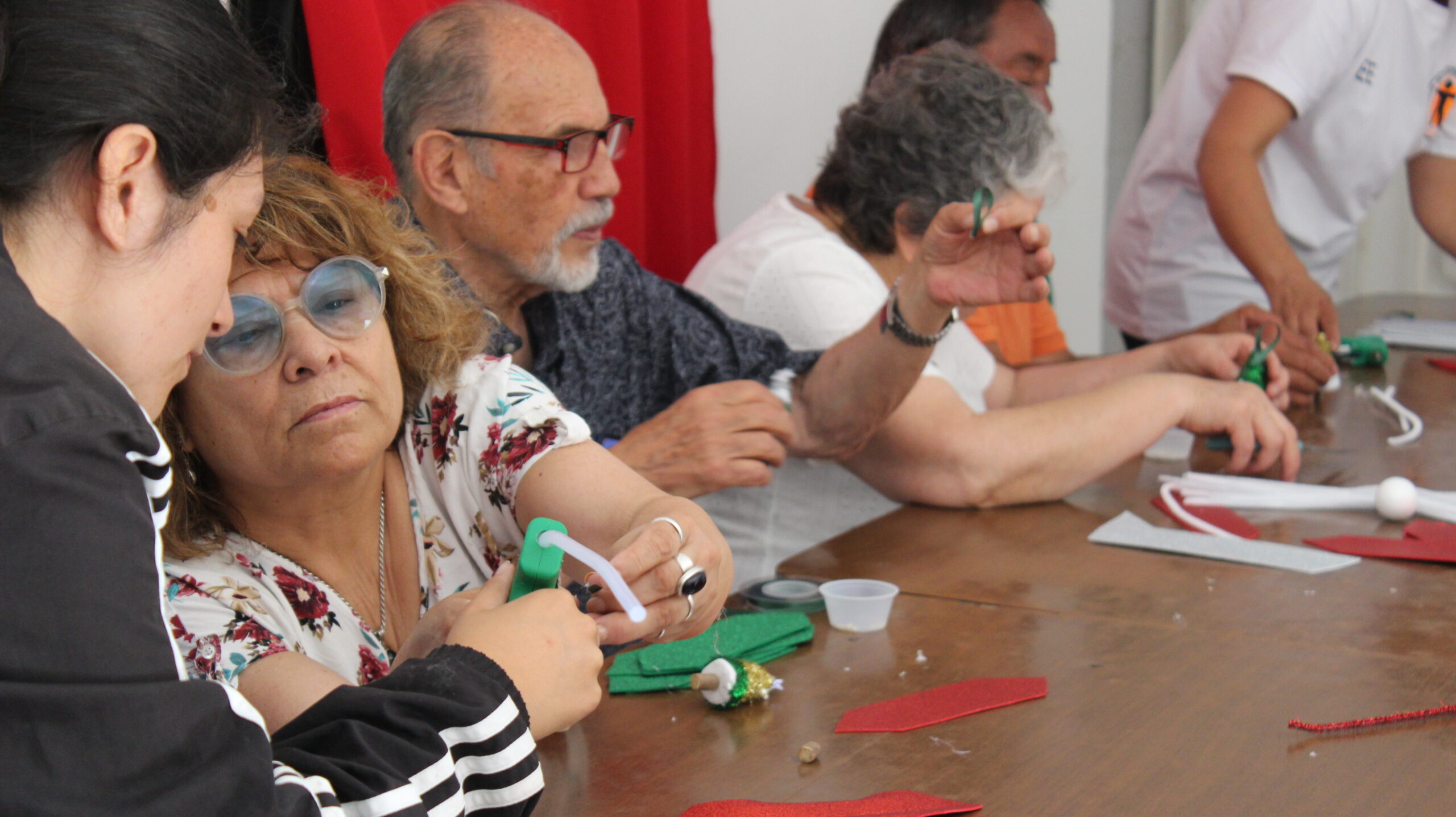 En la actividad, los vecinos y vecinas realizaron un ejercicio de motricidad fina creando ángeles navideños.