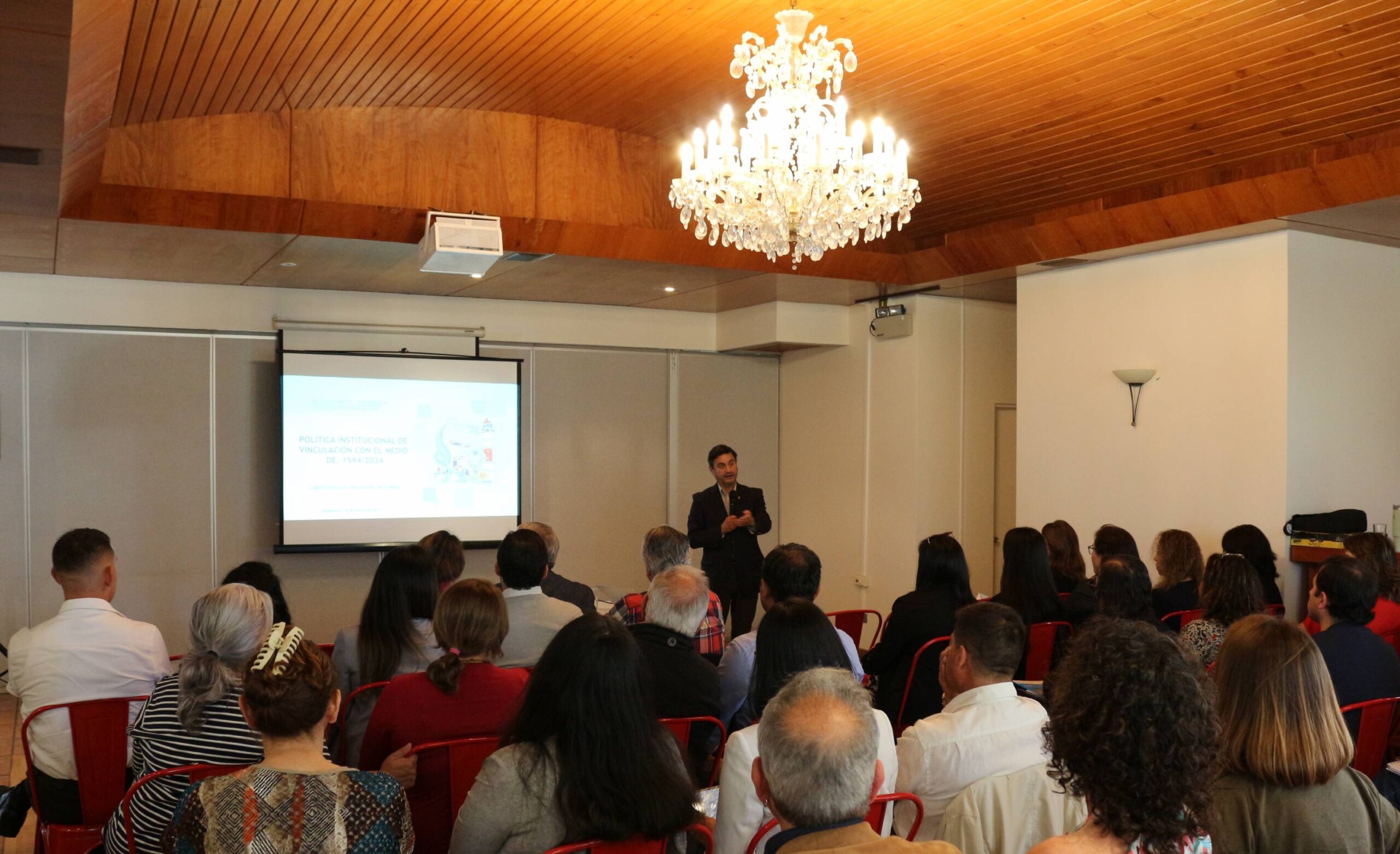El rector Carlos González destacó que se trata de “una Política que es tremendamente importante, dadas las exigencias que tienen actualmente las Universidades en los procesos de acreditación, donde la vinculación con el medio corresponde a uno de los criterios sustantivos. Por lo tanto, el contar con esta Política lo que nos otorga son las líneas, el rayado de cancha sobre el cual las acciones y actividades que se desarrollen desde las facultades, departamentos y carreras tributen a resolver problemáticas del territorio, pero además permitan que esos aprendizajes sean incluidos dentro de los procesos formativos de nuestras y nuestros estudiantes”.