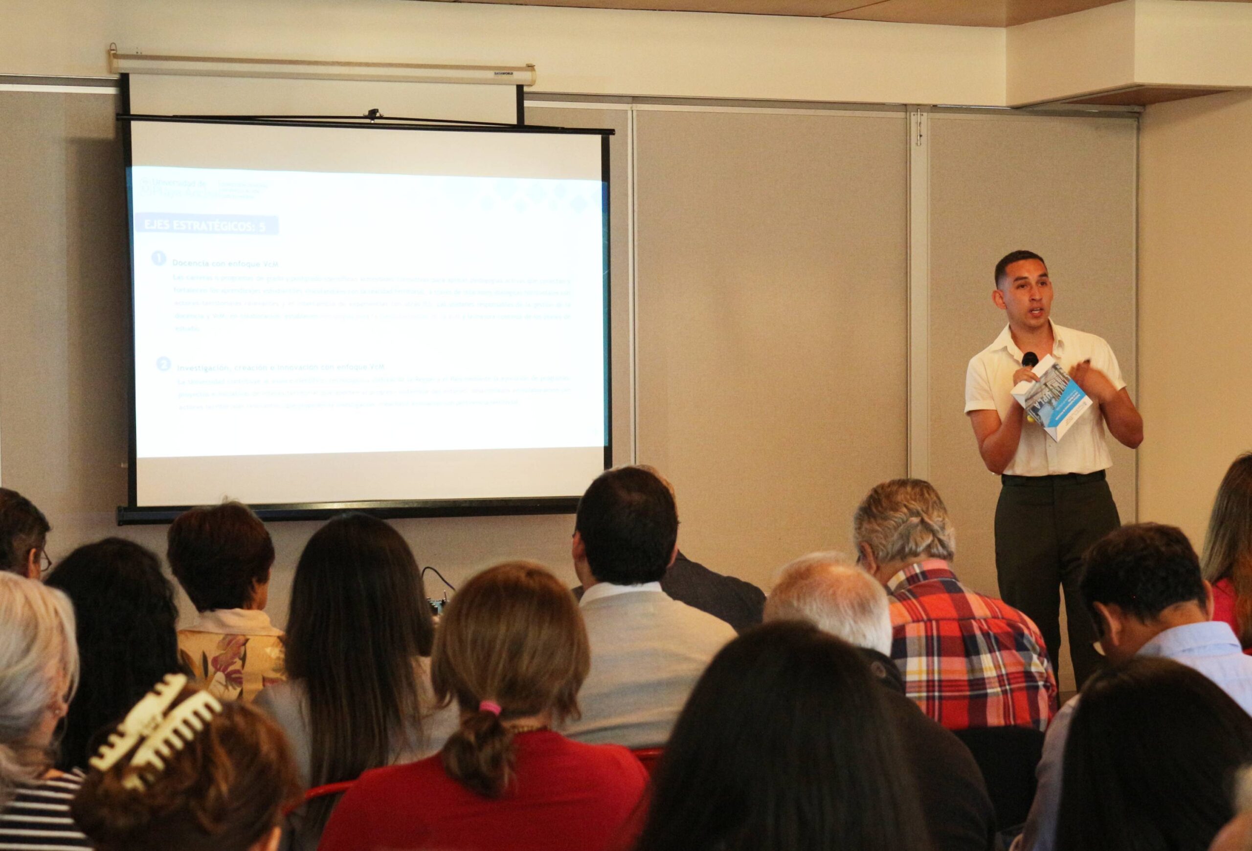El objetivo de la actividad -que contó con la asistencia de alrededor de 60 personas- fue socializar con las diferentes autoridades administrativas y académicas de la Universidad y de sus facultades, el documento actualizado de la Política Institucional de VcM, resultado de un proceso participativo del que formó parte la comunidad universitaria, egresados y egresadas, empleadores, expertos y actores externos, entre otros.