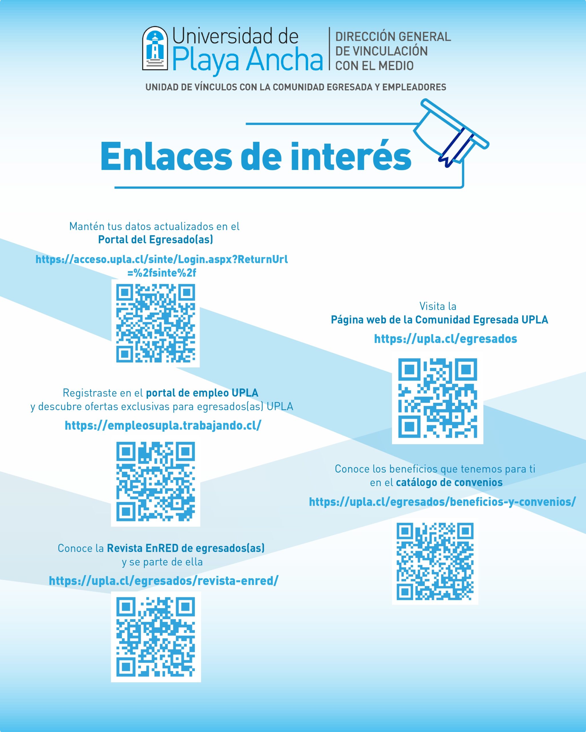 Para las personas interesadas en esta oportunidad de perfeccionamiento, la información completa de los talleres y el formulario de inscripción se encuentra disponible en www.upla.cl/egresados.