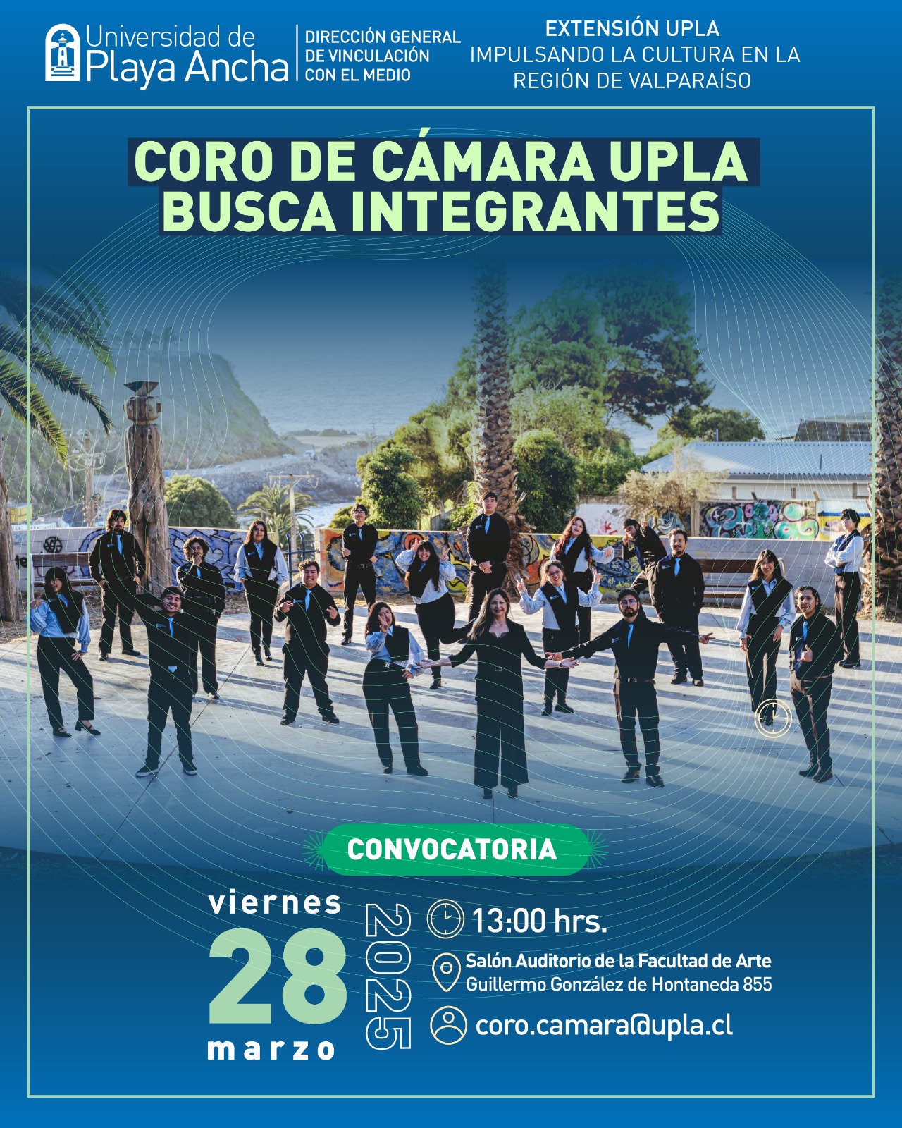 Si te gusta cantar y quieres participar de una instancia coral, esta es tu oportunidad! Participa de las audiciones 2025 del Coro de Cámara UPLA!