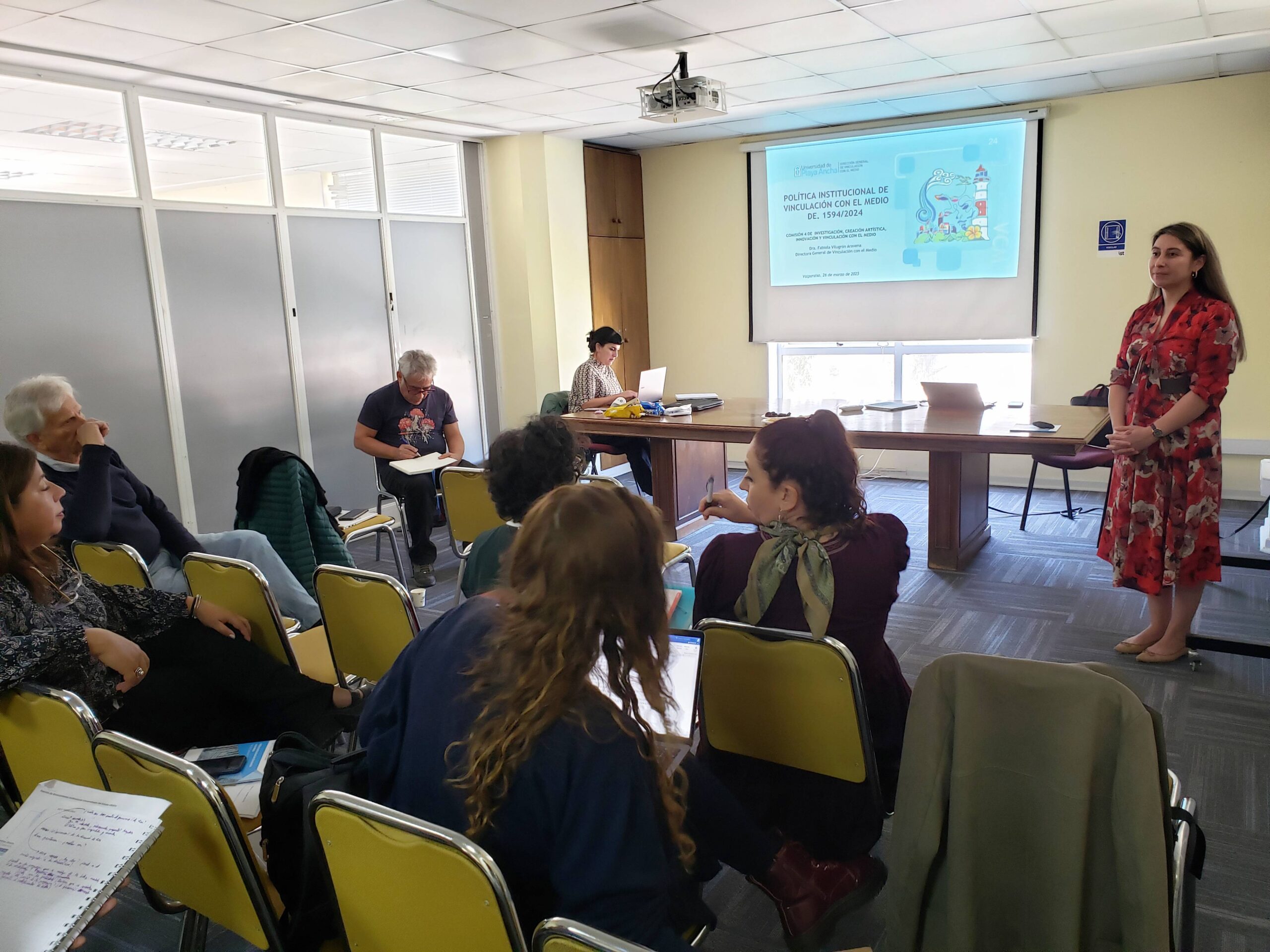 Tras la presentación de la Política de Vinculación con el Medio, los integrantes de la comisión del Senado Universitario pudieron realizar consultas a la directora de la DGVM, generándose un provechoso diálogo que permitió una mejor comprensión de los alcances de la modernización de este estratégico y misional instrumento institucional.