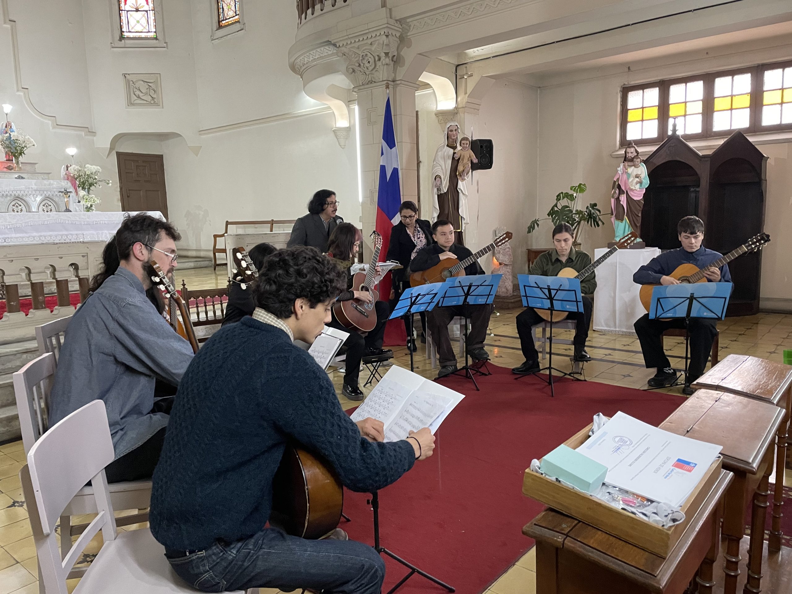La jornada contó con la participación del Semillero de Guitarras UPLA, conjunto compuesto por estudiantes de la carrera de Pedagogía en Educación Musical, bajo la dirección del profesor Daniel Díaz Cerda. La agrupación interpretó una selección de cuatro piezas musicales, al inicio y al cierre de la ceremonia, generando un ambiente íntimo que se vio potenciado por la acústica singular del lugar.