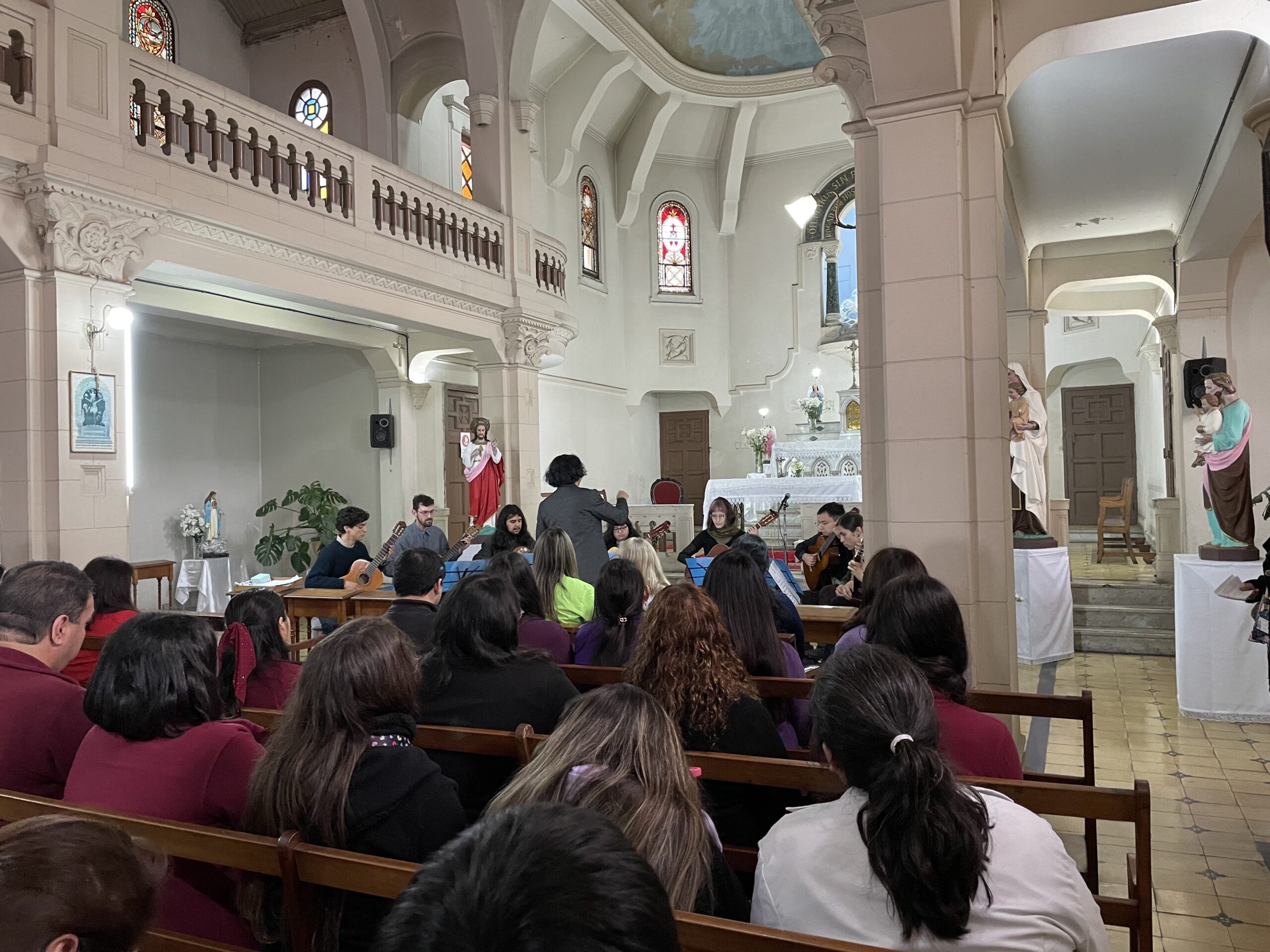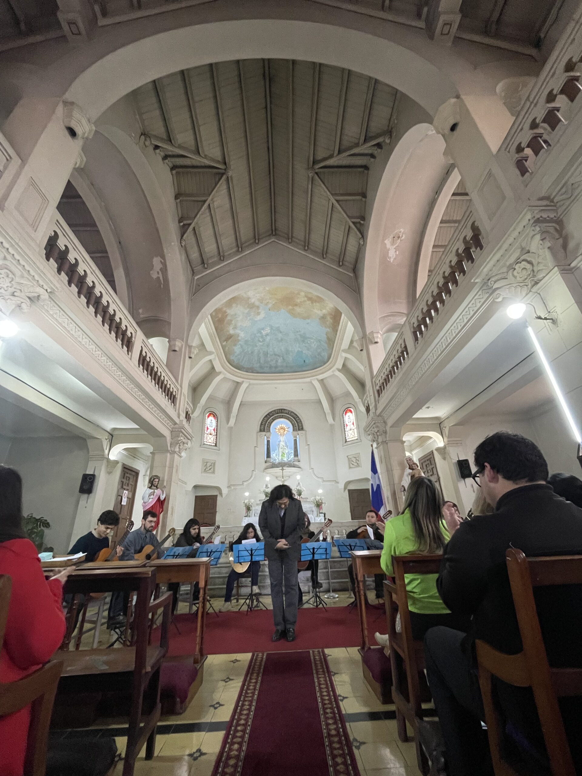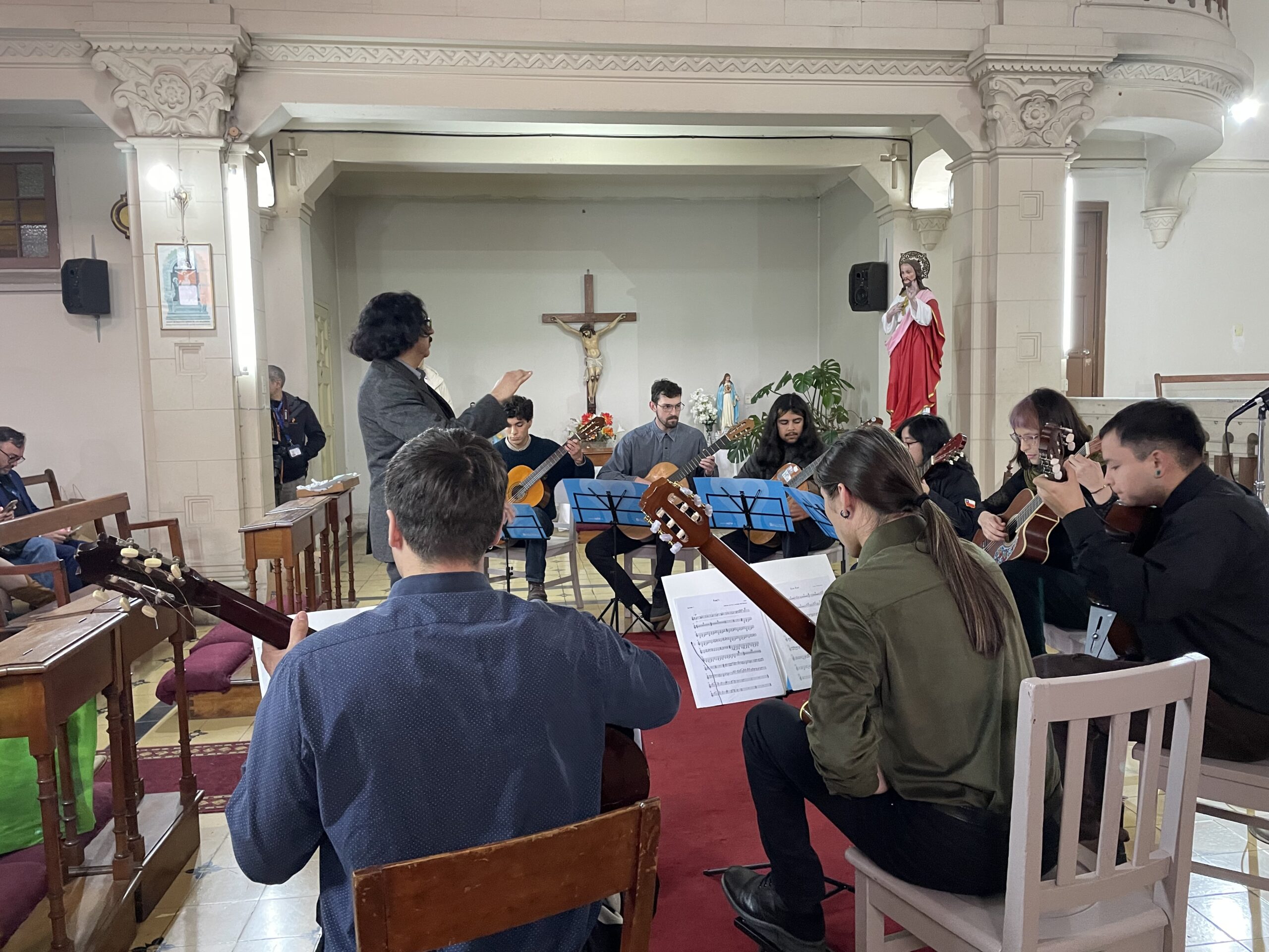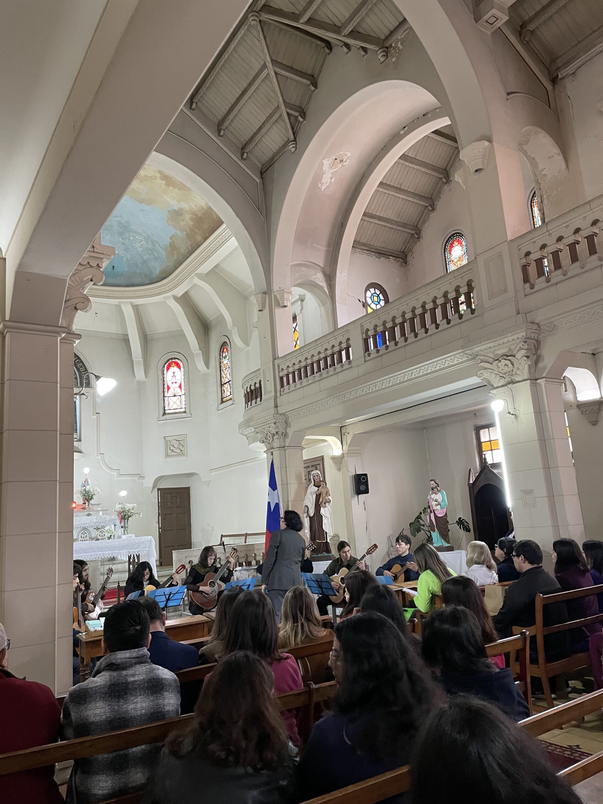 Entre las asistentes, la actividad fue muy valorada. Paula Cisterna, directora de Campos Clínicos de la Universidad Andrés Bello, y Lorena Pino, coordinadora de Campos Clínicos de Tecnología Médica de la UNAM, destacaron la calidad de la presentación y la sonoridad del espacio: “Fue una experiencia muy distinta, muy bonita. No siempre se tiene la oportunidad de ver tantas guitarras juntas, se notaba el talento de los estudiantes”, comentó Pino. “La acústica ayuda mucho. Cada detalle se escuchaba armonioso, fue una experiencia muy especial”, agregó Cisterna.