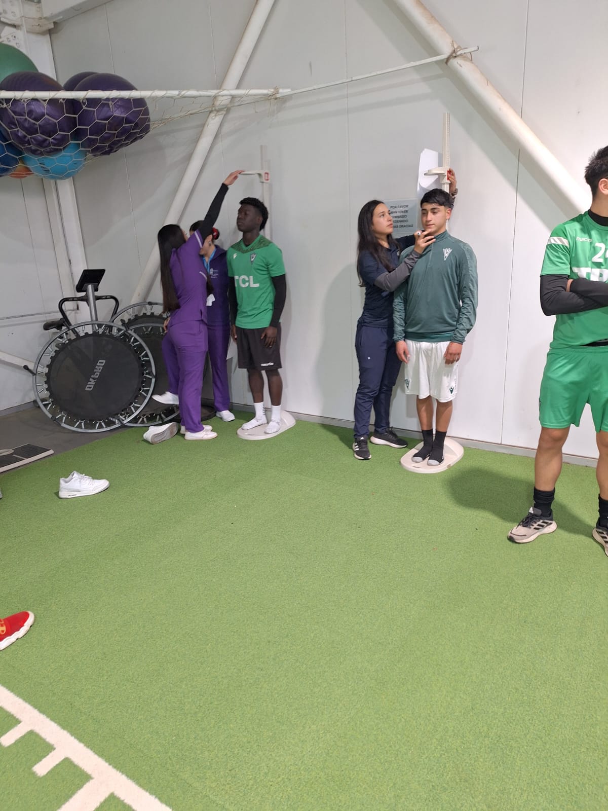 La iniciativa, que fue apoyada por el Fondo de Metodologías Activas de la Dirección General de Vinculación con el Medio, se desarrolló en el marco de la asignatura “Nutrición y Ejercicio” y permitió que estudiantes de cuarto año realizaran evaluaciones nutricionales a futbolistas de las categorías sub-15 a sub-21 del club Santiago Wanderers, integrando conocimientos teóricos con esta práctica en terreno. La intervención contempló la aplicación de técnicas como antropometría y análisis de composición corporal, generando informes individualizados con parámetros clave como masa muscular y masa grasa, ajustados a las características de edad y a la posición de cada deportista.