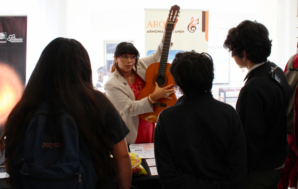 El tercer stand de la Universidad de Playa Ancha presente en la Feria STEAM correspondió al proyecto de Vinculación con el Medio “Armonías que unen” (Fondo Raíz Región), a cargo de Francisca Torres Espinoza, egresada de la carrera de Pedagogía en Educación Musical. Una iniciativa que desarrolló una metodología para aprender la ejecución de distintos instrumentos, y así poder conformar ensambles musicales.