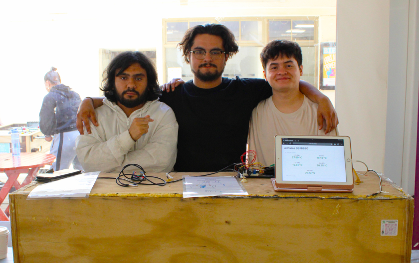 Por una parte, junto a la académica Ximena Espinoza Ortiz, estudiantes de la carrera de Ingeniería Civil Informática mostraron a los asistentes la iniciativa de la «Casa auto-sustentable» (Fondo Social CreaLab, DGVM), exponiendo específicamente el experimento a través del cual se busca determinar el coeficiente de conductividad de paredes elaboradas con materiales poco convencionales, y si éstas son realmente una alternativa viable de construcción.