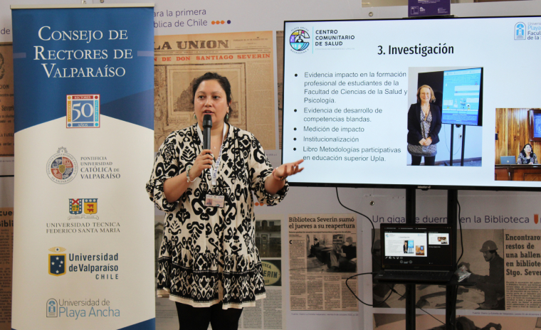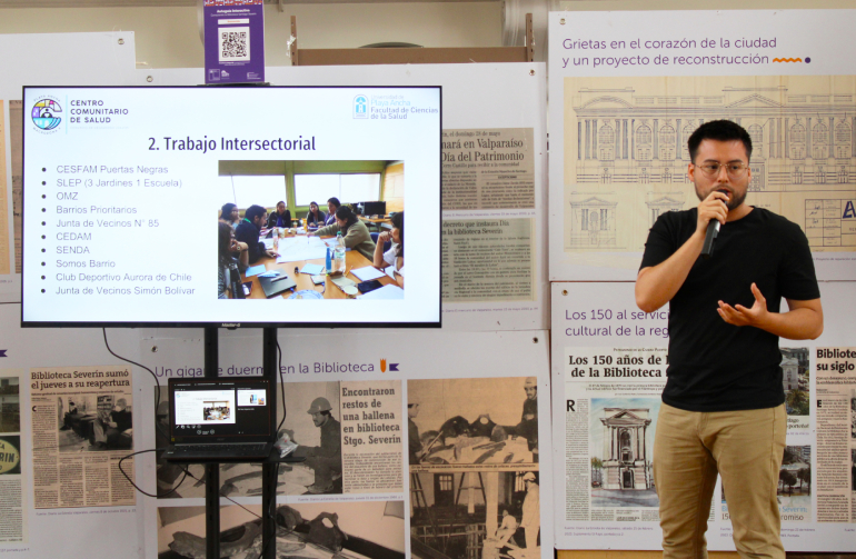 Al respecto, Natalia Montes explicó que “expusimos cómo se implementó este proyecto desde el año 2021, cómo fue llevar las cinco carreras de la Facultad de Salud, más Psicología, y el trabajo comunitario en salud que se hizo hasta el 2024, mostrando además la experiencia de que este Centro Comunitario de Salud que surgió desde la iniciativa de vinculación con el medio, se institucionalizó y se le pudo dar continuidad a la labor en el territorio, y ya no solo en Playa Ancha, sino que también en Placeres y en otros sectores de Valparaíso. Es importante compartir nuestra experiencia con otras tres grandes universidades de la región, aprender de ellas, permitiéndonos también armar redes interuniversitarias y dar a conocer el trabajo territorial histórico que ha estado haciendo la UPLA y, en específico, la facultad, como un aporte desde una institución pública hacia las políticas públicas regionales”.