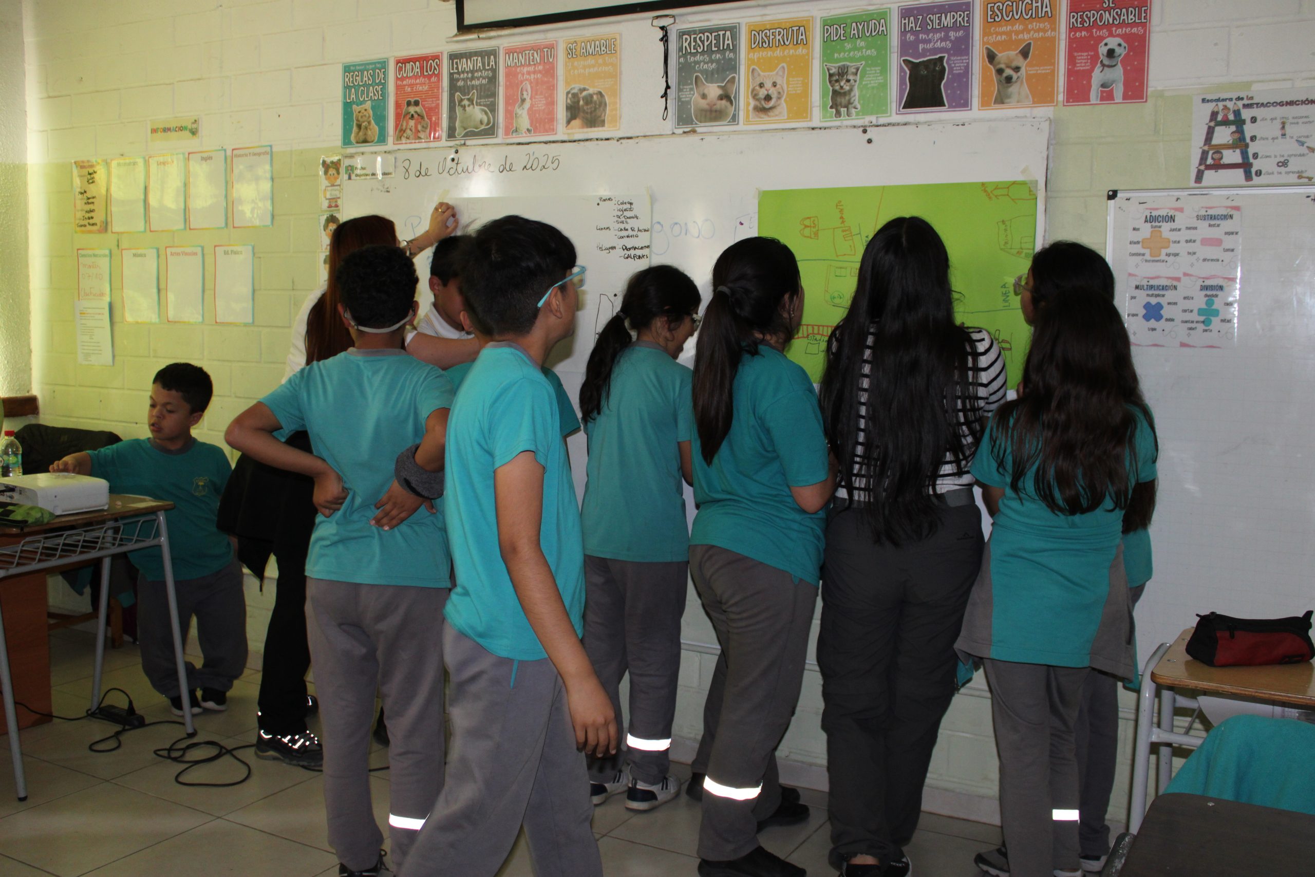Durante la jornada, los y las estudiantes universitarios trabajaron directamente con niños y niñas de quinto básico, guiándolos en la elaboración de planos y mapas, además de introducir conceptos de geometría y visualización matemática de manera práctica y participativa. La experiencia permitió a los escolares observar y comprender el entorno que los rodea, relacionando el aprendizaje con su contexto local.