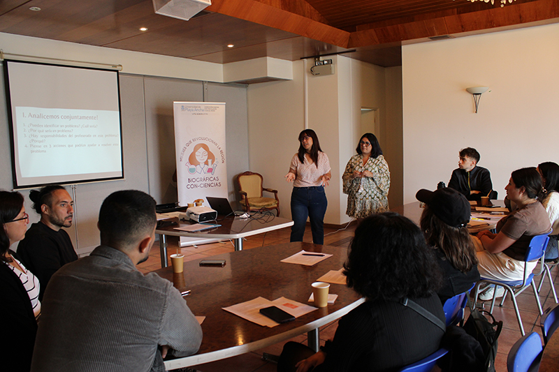 El evento también anidó el cierre del proyecto de consolidación Social CreaLab 2024 “Biografías con-ciencias: mujeres que revolucionan la región”, de las académicas Valentina Ruiz Olivares y Fabianna Otárola Benavides, que contempló una sesión de reflexión docente que abordó la perspectiva de género interseccional en la docencia, convocando a estudiantes en formación inicial docente y a docentes en ejercicio.