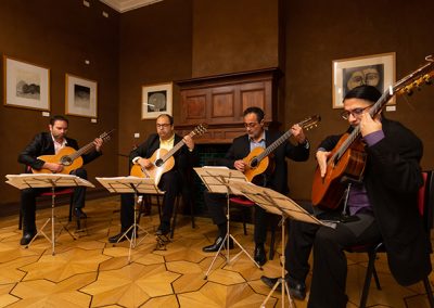 El repertorio de Guitárregas es amplio, abarcando los distintos periodos de la música tales como Barroco, Clásico, Romántico, Contemporáneo, Popular, Rock, Música Latinoamericana y de raíz folklórica, estilos dados a conocer por sus principales exponentes como Bach, Vivaldi, Mozart, Brouwer, Piazzola, Violeta Parra, Víctor Jara, Arturo Márquez, entre otros. Cabe señalar y destacar la gran cantidad de obras que han sido creadas y dedicadas a esta agrupación, convirtiéndose de alguna manera en un canal importante para que los jóvenes compositores muestren sus obras en las salas más importantes del país.
