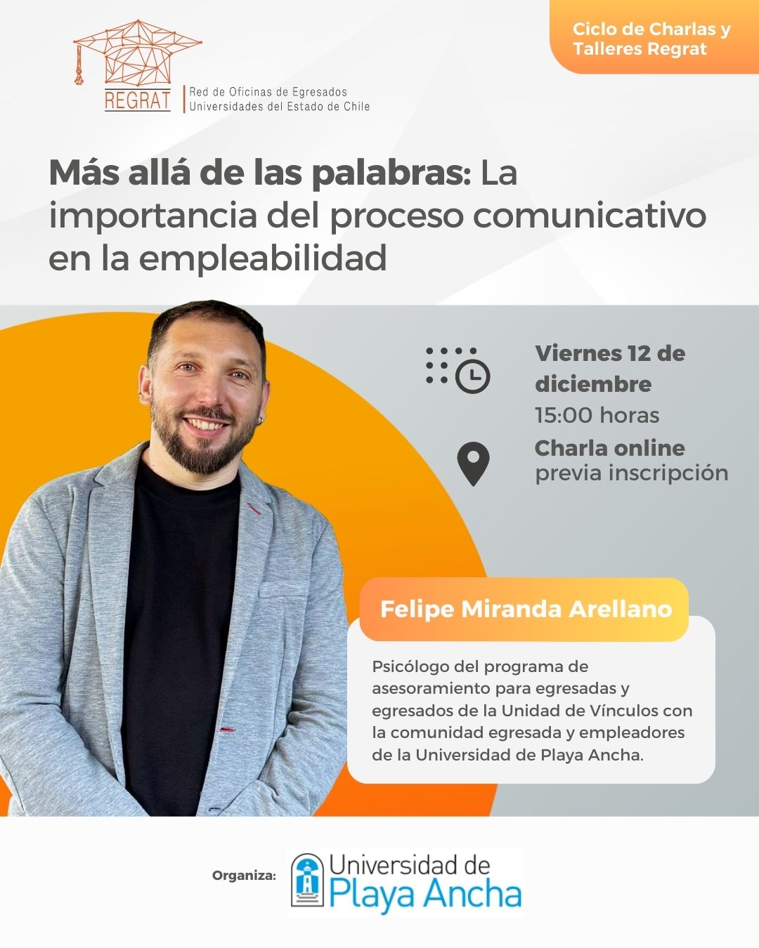 Esta actividad es organizada por la Red de Oficinas de Egresados(as), Graduados(as) y Titulados(as) de las Universidades del Estado de Chile (REGRAT), junto a la Unidad de Vínculos con la comunidad egresada y empleadores de la Dirección General de Vinculación con el Medio de la Universidad de Playa Ancha.