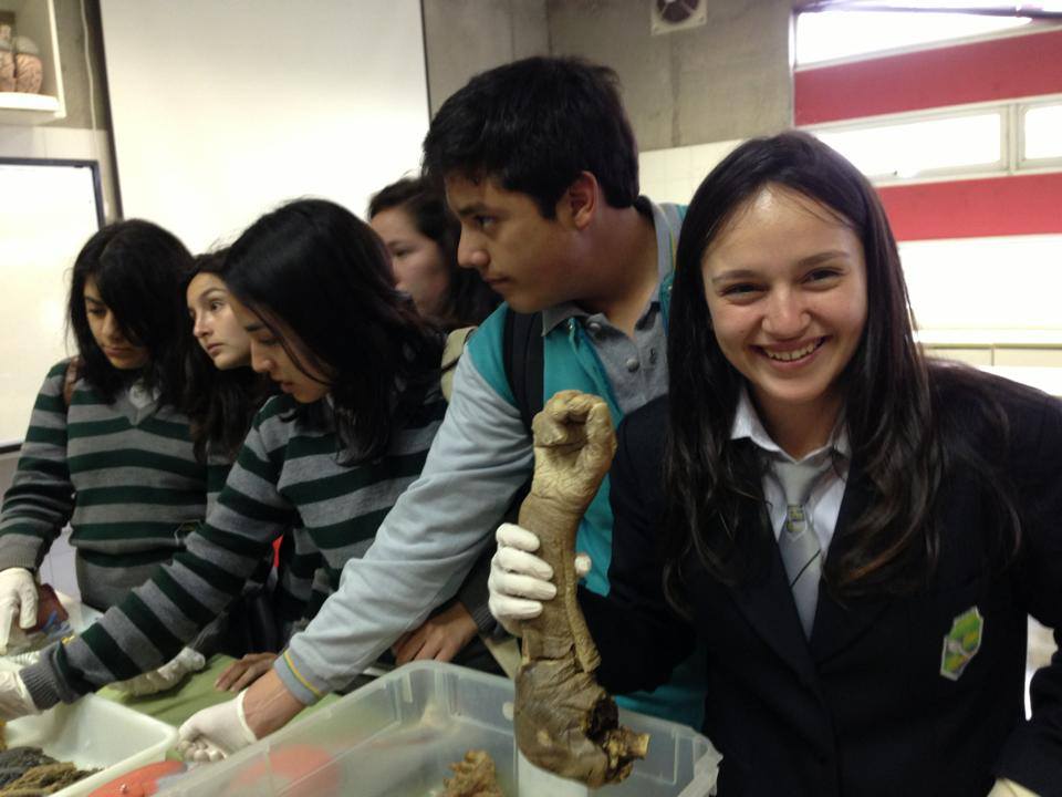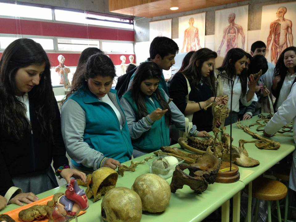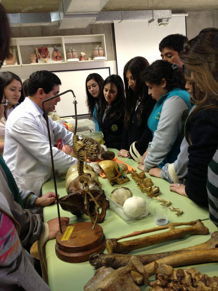 Luego el grupo científico visitó el Laboratorio de Morfología , donde fueron recibidos amablemente por Enrique Flores, quien los instruyó utilizando huesos, órganos y partes del cuerpo humano reales.