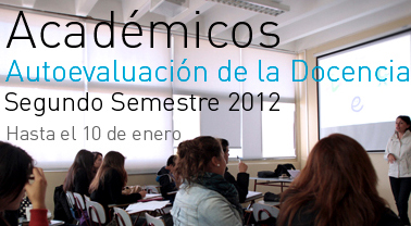 A partir del miércoles 27 de diciembre y hasta el jueves 10 de enero de 2013, estará disponible en el portal web institucional el Módulo de Autoevaluación de la Docencia (II Semestre 2012) para todos los académicos de nuestra universidad.