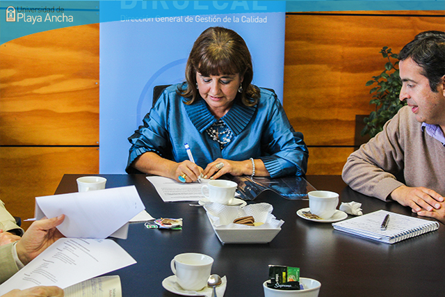 Otro objetivo de importancia fue la realización de la Firma de Acuerdo de Trabajo Conjunto documento que regula y especifica el compromiso de la DIRGECAL en apoyar a la carrera firmante en la autoevaluación con fines para la reacreditación, en todo lo que le compete según lo estipulado en la Guía para el Proceso de Autoevaluación y Acreditación de Carreras de Pregrado.