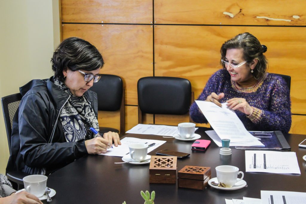 El principal objetivo de esta reunión fue realizar la Firma de Acuerdo de Trabajo Conjunto, documento que regula y especifica el compromiso de la DIRGECAL en apoyar a la carrera firmante en la autoevaluación con fines para la renovación de su acreditación, en todo lo que le compete según lo estipulado en la Guía para el Proceso de Autoevaluación y Acreditación de Carreras de Pregrado. Por su parte, la carrera se comprometió a llevar a cabo las fases estipuladas en la guía antes mencionada y cumplir los plazos acordados por la DIRGECAL y el Comité de Autoevaluación de Carrera (CAEC) durante el proceso de autoevaluación y acreditación. Finalmente se acordó que ambas partes respetaran las orientaciones de la Facultad de Ciencias Sociales, Vicerrectoría Académica, Dirección de Estudios e Innovación Curricular y Dirección de Pregrado