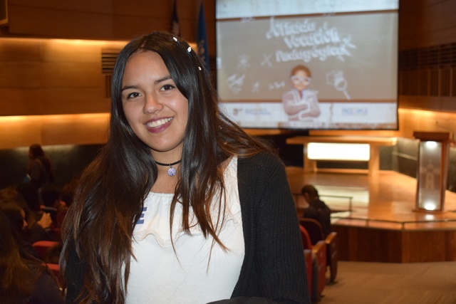 Marion Valdivia cursa 4º medio en el Liceo Santiago Scutti Orrego de Quillota y quiere estudiar Pedagogía en Educación Diferencial. Primera vez que visita la UPLA. “Me parece bien esta actividad, porque es una buena oportunidad que nos dan para conocer las carreras del área pedagógica”.