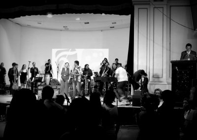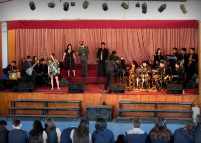 De este modo, a la Big Band UPLA le correspondió dirigirse al Instituto Comercial Eliodoro Domínguez Domínguez (ex – INFESUCO), lugar en el que brindaron un espectáculo que pretendió hacer un recorrido por la historia de la música popular, con el fin de otorgar un espacio de entretención y cultura a los estudiantes y profesores que se acercaron a presenciar el show.