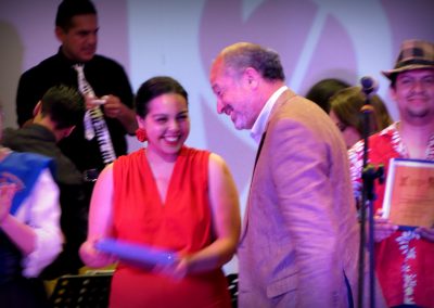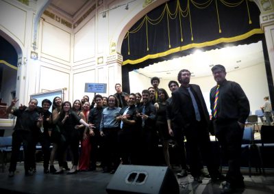 La presentación que puso cierre al primer día de actividades fue la de la Big Band UPLA, elenco a cargo de José Godoy que tuvo la misión de representar a nuestra casa de estudios durante el encuentro y que animó la fiesta cultural que se estuvo desarrollando en el Aula Magna, provocando que los asistentes se levantaran de sus sillas para acompañar a la agrupación a través de las palmas, el canto y el baile.