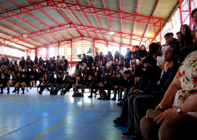 El alumno de Segundo Medio B Benjamín Solorza del ex- INFESUCO, aseveró: “El acto me pareció genial porque está bien compartir el soul, las baladas, cumbias y todo eso, ya que es bueno dar a conocer canciones que ahora no se escuchan mucho. Los cabros tocaron súper bien y me gustaría que se repitiera con un acto en el que participe todo el colegio, porque se seleccionaron algunos cursos. Felicitaciones, les salió muy bien, se nota que les gusta lo que hacen porque estaban todos prendidos”.