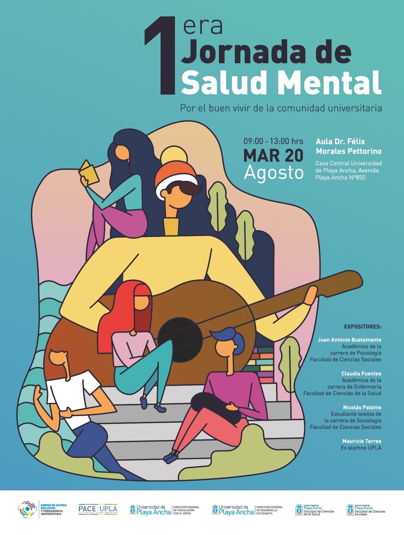 La Universidad de Playa Ancha, a través de la comisión organizadora, tiene el agrado de invitar a usted a la «I Jornada de Salud Mental, por el buen vivir de la comunidad universitaria», a llevarse a cabo el próximo martes 20 de agosto, entre las 9.00 y las 13.00 horas en el aula Dr. Félix Morales Pettorino de la UPLA, ubicada en Av. Playa Ancha N° 850, Valparaíso.