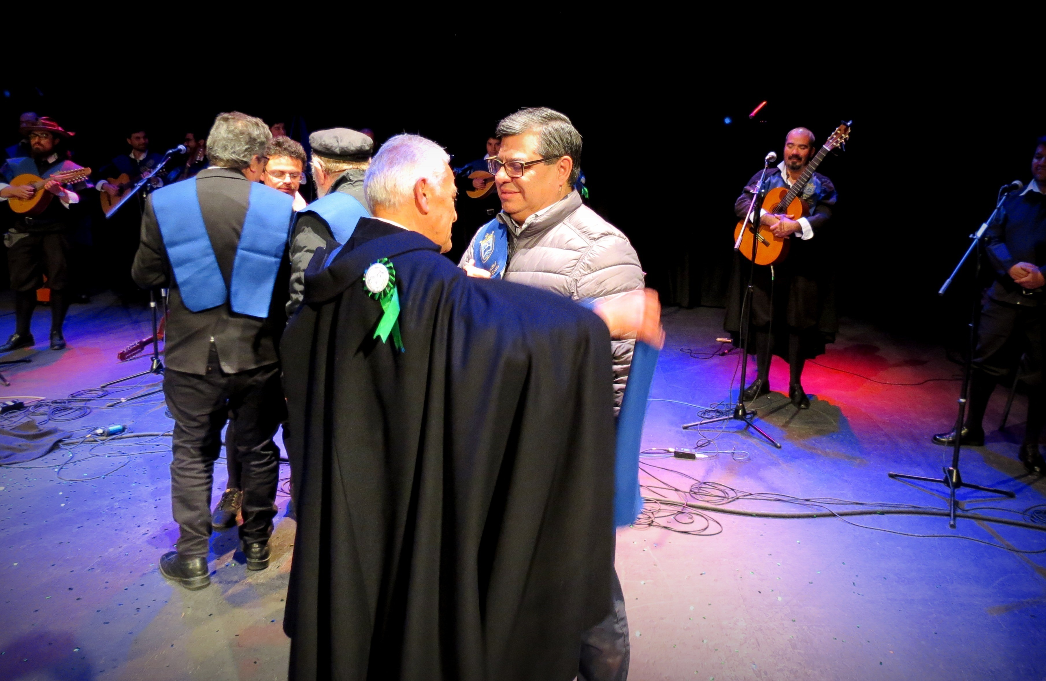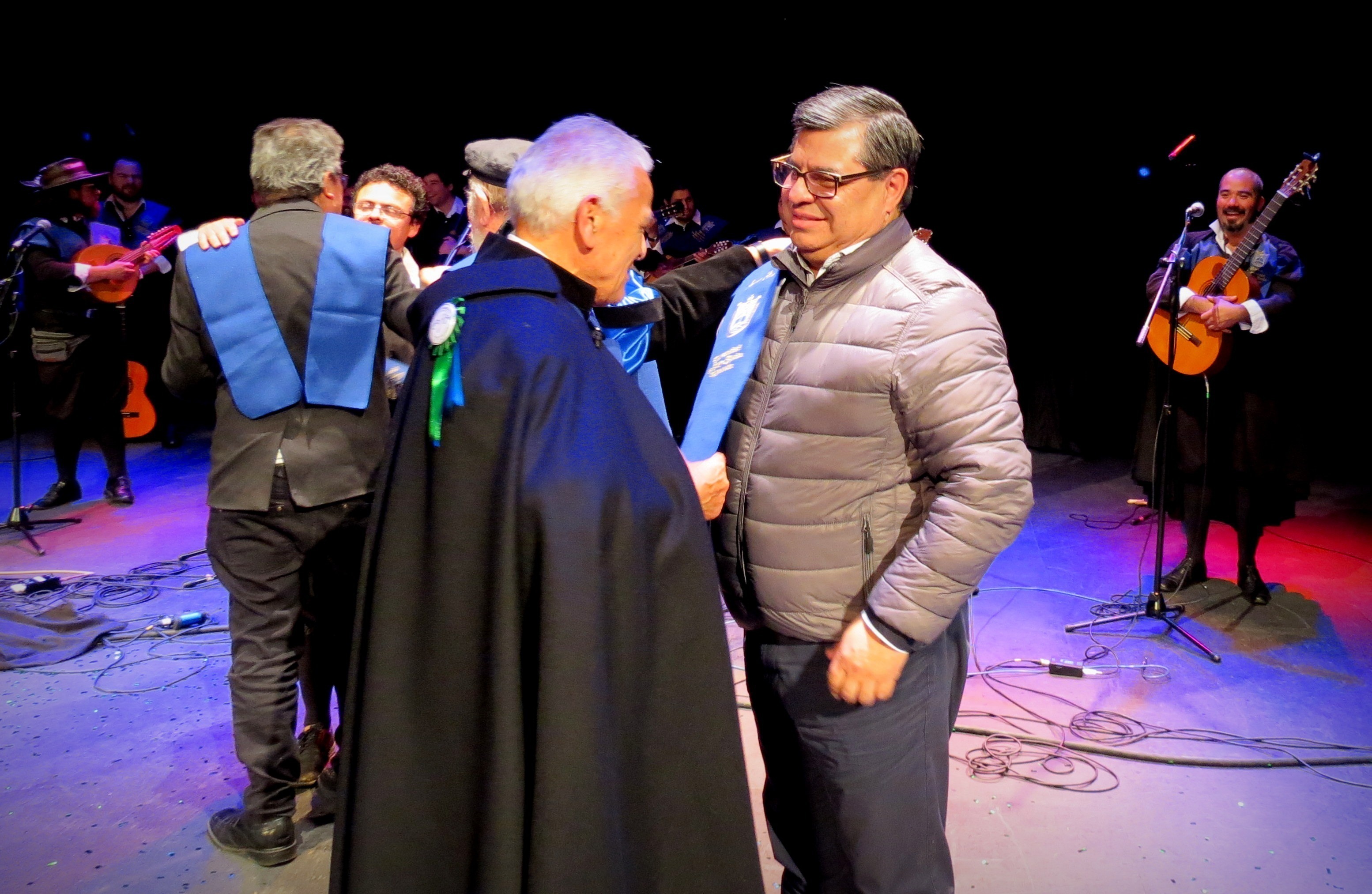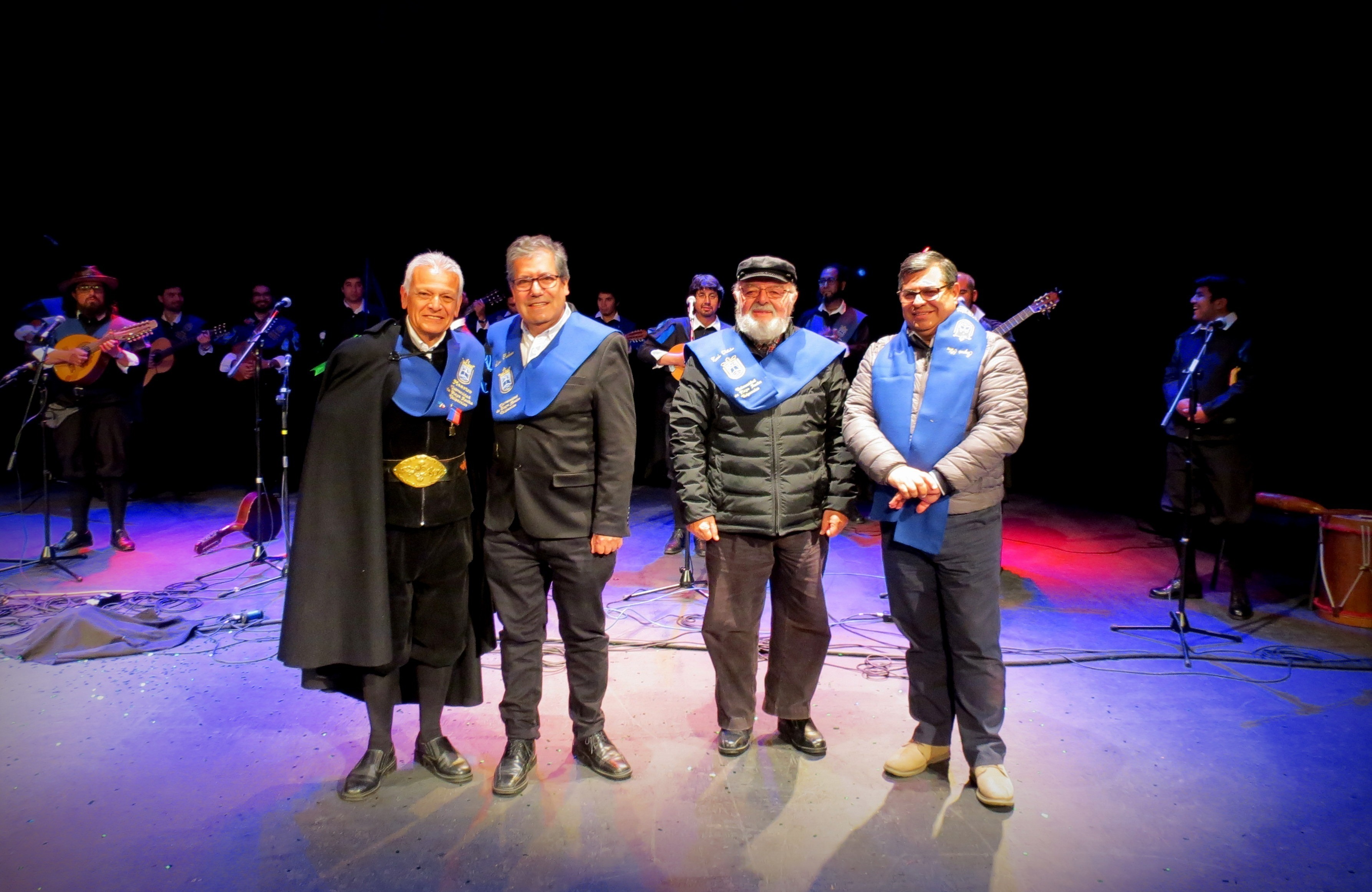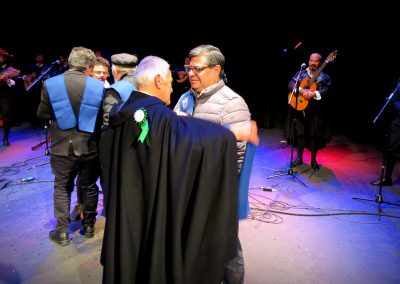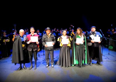 La actividad contó con la presencia del rector Patricio Sanhueza, ex rector Óscar Quiroz, ex vicerrector Carlos Villalón y el director general de Desarrollo Estudiantil, Gregorio Silva, quienes recibieron una beca que los transformó en Tunos Ad Honorem.