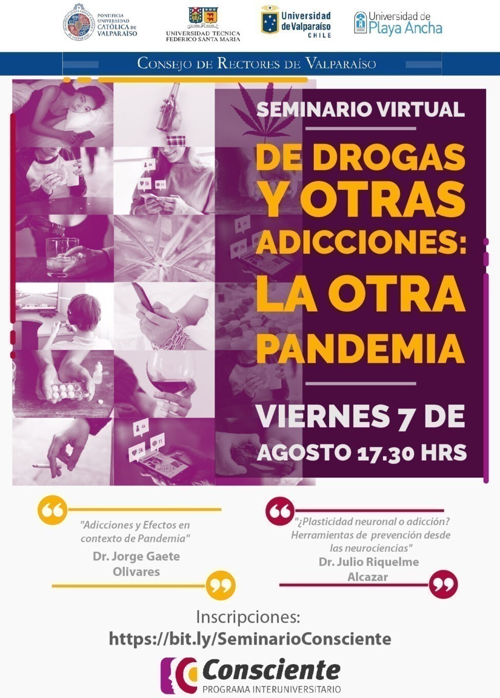 💻 Los invitamos a participar en el Seminario Virtual «De drogas y otras adicciones: La otra pandemia», organizado por el Programa Interuniversitario Consciente.