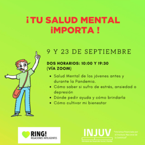La Dirección General de Desarrollo Estudiantil informa que la Fundación Relaciones inteligentes (Ring!) en conjunto con sus voluntarios, los invitan a participar en charlas sobre Salud Mental destinadas a estudiantes universitarios, con el objetivo de generar conciencia y enseñar a identificar diversos factores que influyen en la salud mental, además de facilitar técnicas y material para ayudar a regular las emociones.