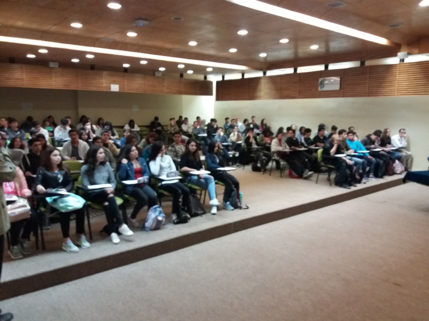Los futuros ingenieros poniendo atención a la actividad preparada por los académicos de la Facultad de Ingeniería. Fuente: registro gráfico Facultad de Ingeniería, 2018.