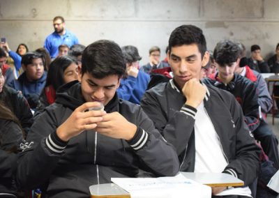 Es así como la delegación del colegio Galileo de Quillota escuchó a las estudiantes de Ingeniería Civil Ambiental Constanze Canave Negroni, Scarlett Rencoret Cornejo y Paula Olivares Vargas, quienes dieron cuenta de una carrera que las forma para marcar una diferencia en términos de formación de capital humano invitándolos a ser ingenieros/as en acción, integrales y solidarios.