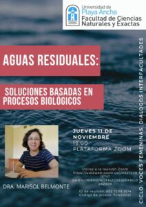 En esta oportunidad, la Dra. en Ciencias Ambientales mención Sistemas Acuáticos Continentales de la Facultad de Ingeniería, Marisol Belmonte Soto, expondrá sobre “Aguas residuales: Soluciones basadas en proceso biológicos”.