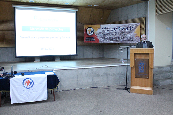 El evento, organizado por integrantes de la Agrupación de Usuarios y Usuarias de Ascensores de Valparaíso (Ascenval) con el patrocinio de las facultades de Ingeniería y de Arte de la UPLA, tuvo como ponentes a integrantes de esta organización, a expertos en transporte vertical y en rescate de ascensores de Valparaíso, a representantes de la carrera de Ingeniería Civil Industrial y del Magíster en Arte Mención Patrimonio, y al gobernador regional de Valparaíso Rodrigo Mundaca.