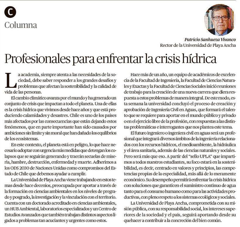 La Universidad de Playa Ancha viene trabajando en estos temas desde hace decenios, preocupada por aportar a través de la formación en ciencias ambientales en los niveles de pregrado y postgrado, la investigación y la vinculación con el territorio. Cuenta con un doctorado acreditado en ciencias ambientales, un HUB Ambiental, laboratorios especializados y un Centro de Estudios Avanzados que también trabajan distintos aspectos ligados a problemas tan acuciantes y urgentes como estos.