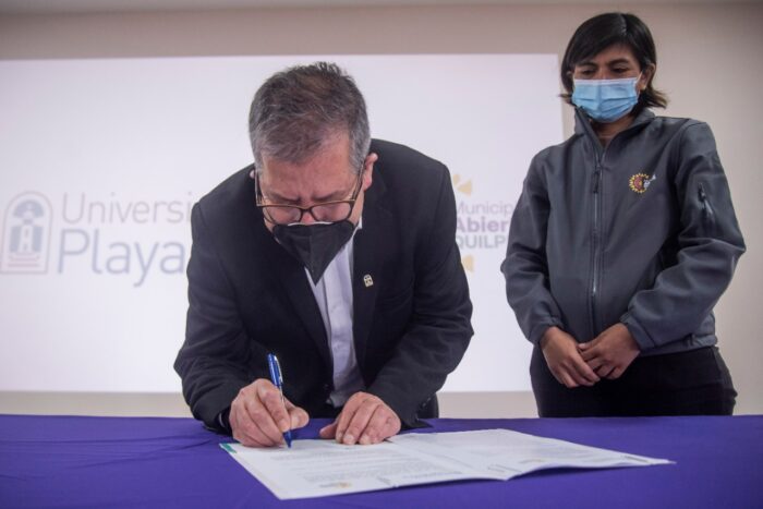 Para reforzar este proyecto y otros que se desarrollan de forma conjunta, ambos organismos suscribieron un convenio de colaboración que apunta a fortalecer lazos entre las dos instituciones, y, sobre todo, beneficiar a la comunidad. Así lo explicó Patricio Sanhueza Vivanco, rector de la Universidad de Playa Ancha: “Tenemos que focalizarnos en las personas, en lo que las rodea, los problemas que agobian a las personas y cómo los vamos resolviendo en conjunto. (…) Nosotros sentimos que cumplimos con una misión, que es de preocuparnos del bien común, del entorno. Somos una universidad del Estado y, por lo tanto, tenemos los principios de la educación pública, y esos principios tienen que ver con temas tan importantes como el interés general, el interés común, el bien común, y la relación permanente del conocimiento con el hacer, con la aplicación del mismo conocimiento”.