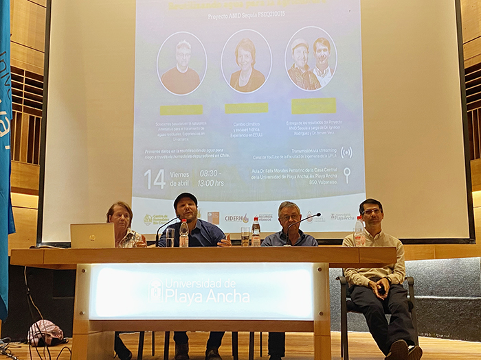 El Seminario Internacional “Humedales Depuradores: Reutilizando agua para la agricultura”, fue organizado por la académica del Departamento de Ciencias de la Ingeniería para la Sostenibilidad de la Facultad de Ingeniería, Dra. Marisol Belmonte, quien además forma parte del equipo investigador del proyecto ANID Sequía.