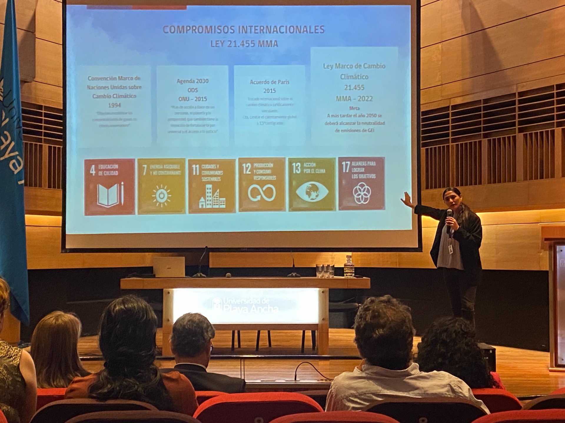En ese sentido, recalcó que el rol de las instituciones de educación superior es clave para promover y desarrollar una agenda sustentable. “Son los formadores de los futuros profesionales que van a estar en su espacio de trabajo y espacios personales, implementando todo lo que se necesita para construir una sociedad más justa, más resiliente y que pueda enfrentar la crisis climática que hoy en día estamos viviendo”, dijo Patricia Opazo.