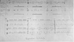 Partitura de la composición de uno de los grupos