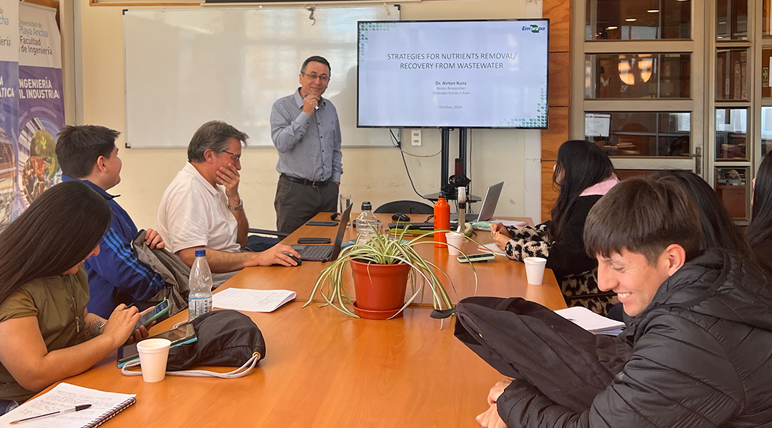 Concretando una nueva alianza entre investigadores e investigadoras de la Facultad de Ingeniería y la Empresa Brasileira de Pesquisa Agropecuátia (EMBRAPA) del Ministerio de Agricultura, Ganadería y Abastecimiento de Brasil, el Dr. Airton Kunz coronó el taller internacional “Aguas residuales: ¿Tratamiento o recuperación?” realizado este lunes 16 de octubre en Playa Ancha.